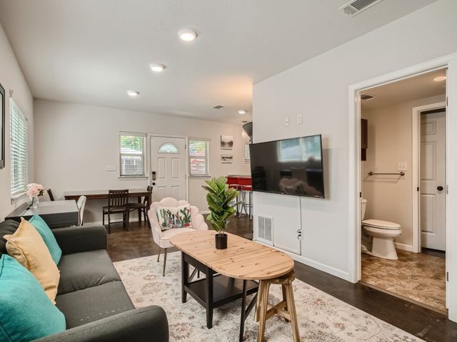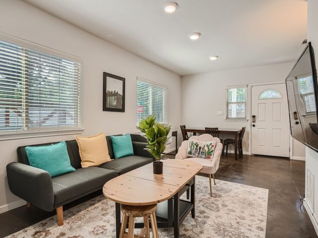 YOU CAN BUY THIS $1,075,000 home for the same payment as a $914,000 home. UPGRADE into this Home. SELLER FINANCING AVAILABLE with MUCH lower than market rates. Buyer can get a rate in the mid 5% to mid 6% depending on down payment. MINIMUM of 20% down and Buyer must get pre-approved with Leahy Lending for seller financing consideration. NO formal underwriting, MUCH lower closing costs, NO discount points, close as fast as 10 days. **October AIRBNB bookings confirmed to make over $12,000 in gross income** Attractive 2-story home on corner lot with private yard, perfect for entertaining. This property has been a highly profitable STR for the last 4+ years. 6 blocks from Rainey St, and just 4 blocks from East 6th, one of the coolest areas in East Austin. Can be used as one residence or split into two units via private entrances and interior locking door, and has STR-1 license. Down has 1/1 and kitchen. Up has 2/1 and kitchen. Substantial remodel in 2017. Make this home your own or use it as an STR. Large insulated attic with two windows that can be converted to loft space. Just minutes from downtown, Town Lake, parks, shopping, and easy access to I-35. All furniture can be sold with the property. The Cowboy pool also conveys