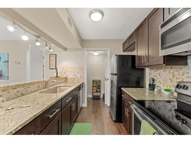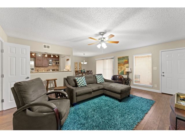 Welcome to this blend of modern, comfortable, and convenient lifestyle in one of Austin's sought-after neighborhoods at 6718 Silvermine Drive #1203. This private end unit, two-story condominium offers a spacious first floor living, dining, and kitchen areas with a powder room and laundry room. Upstairs has 2 sleeping quarters with a balcony and a shared full bath. The open floor plan design maximizes space and natural light, creating an airy and welcoming ambiance! The well-appointed kitchen, features granite countertops, stainless steel appliances, ample cabinetry, and a convenient breakfast bar. The dining area gives access through glass sliding doors to a spacious enclosed patio, great for outdoor living and entertaining. Residents of the Valley View Village Condominiums have access to the common areas, including a sparkling pool. HOA Dues are $357.50 per month plus $97.88 per month for insurance and includes water, trash, sewer, common areas maintenance and 1 assigned parking space #44 and guest parking. Just minutes away from downtown Austin, you'll have easy access to the city's vibrant culture, dining, shopping, and entertainment options. Close proximity to a brand-new HEB, Brodie Oaks Shopping Center, Hill Country Galleria and easy access to Hwy 71, Hwy 290, and Mopac. Don't miss your chance to make this exceptional property your new home.