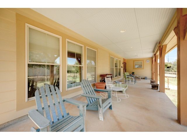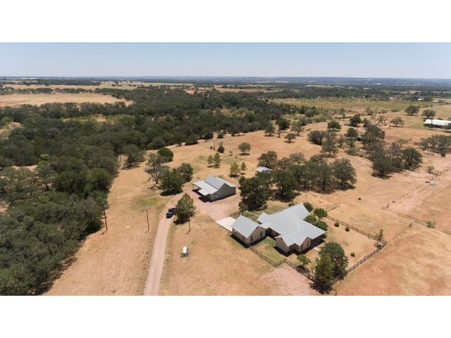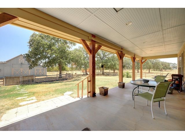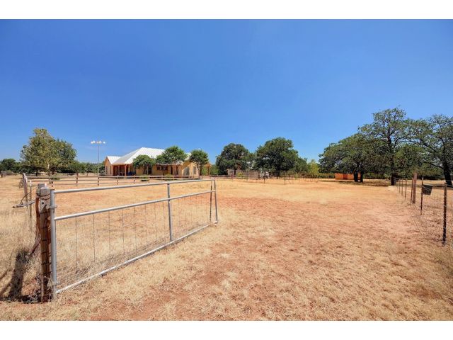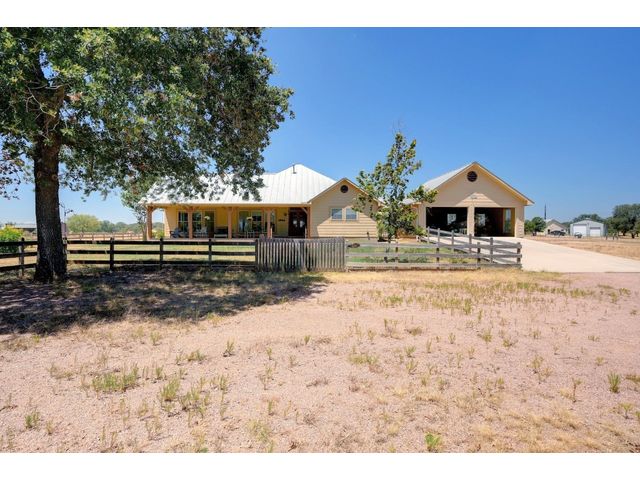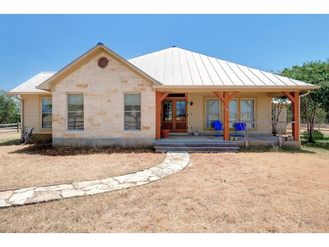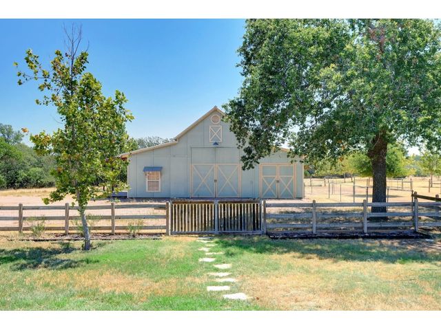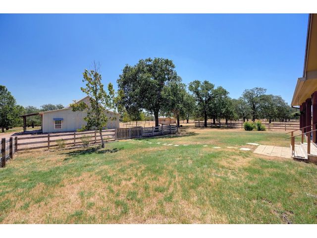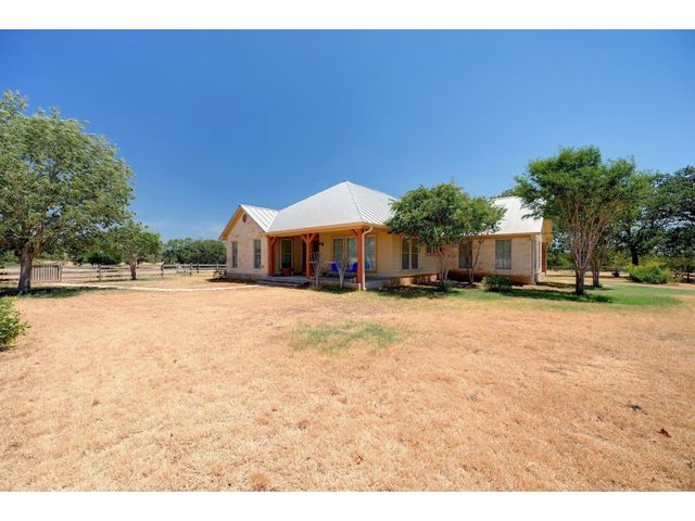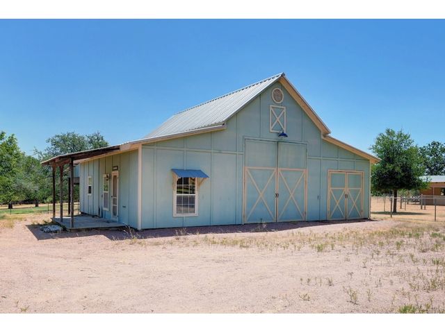 Texas Hill Country Living! This beautiful single story Home is located in desirable Fredericksburg on 6.39 acres and chock full of custom farmhouse features. The main house is a lovely 3/2.5 bath with a detached garage. The kitchen is the heart of the home with beautiful stained glass built in Hutch, custom pull out pantry, custom cabinets and pull out drawers, oversized Corian counters. Windows flood light throughout the entire house. Sit on the Oversized front and back porch to enjoy your coffee in the mornings or to watch the sunset. 4ft wood planks throughout most of the main house. Beadboard accent walls throughout the home. Beautiful glass front built ins in entry hallway. Huge laundry room with built in desk. The property has an RV storage garage with sewage, water and electric hookups. An additional 440sf bunk house apartment with full kitchen bath, living room and dining room (and porch) is attached to the RV barn. There is also a smaller barn for animal equipment and hay. NO STRs, one month lease minimums. You do not want to miss this opportunity to own a piece of Texas Hill Country! Please watch video for all the pictures.