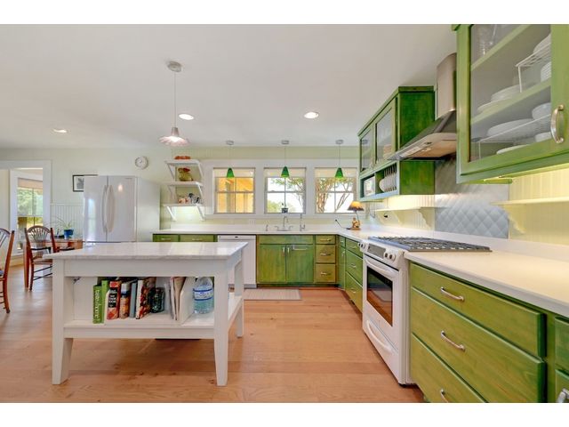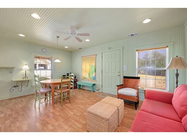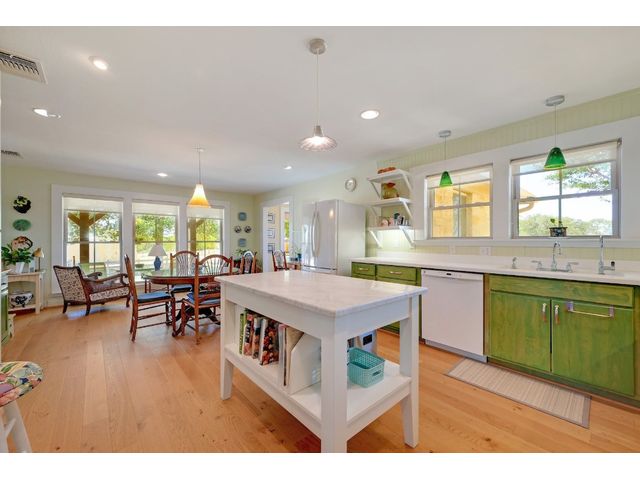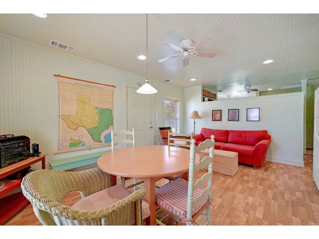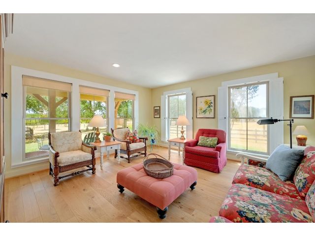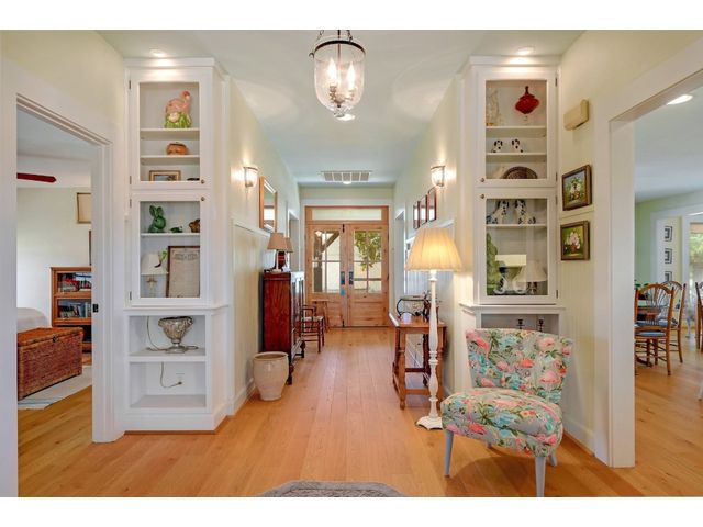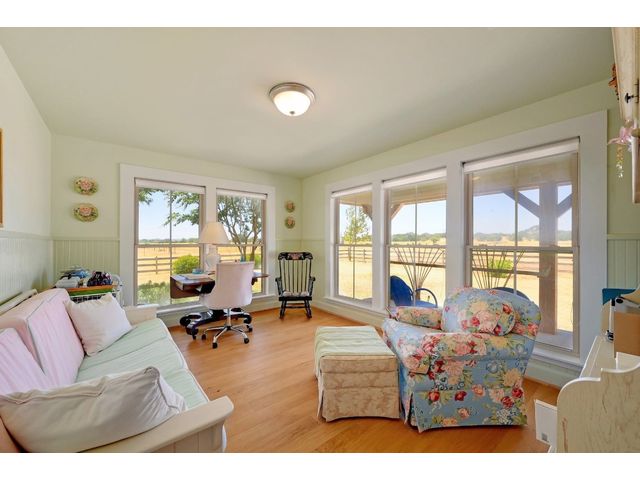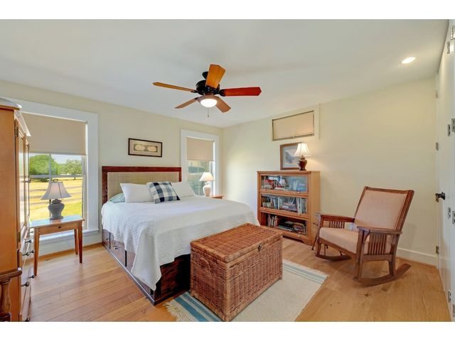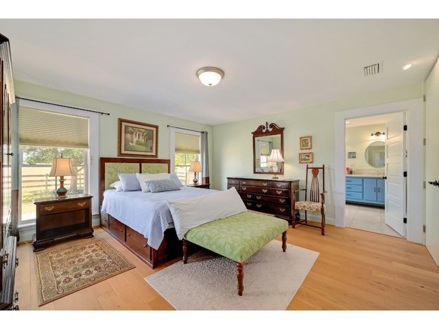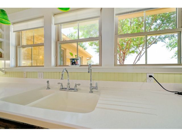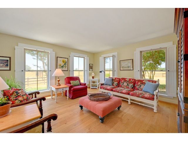 Texas Hill Country Living! This beautiful single story Home is located in desirable Fredericksburg on 6.39 acres and chock full of custom farmhouse features. The main house is a lovely 3/2.5 bath with a detached garage. The kitchen is the heart of the home with beautiful stained glass built in Hutch, custom pull out pantry, custom cabinets and pull out drawers, oversized Corian counters. Windows flood light throughout the entire house. Sit on the Oversized front and back porch to enjoy your coffee in the mornings or to watch the sunset. 4ft wood planks throughout most of the main house. Beadboard accent walls throughout the home. Beautiful glass front built ins in entry hallway. Huge laundry room with built in desk. The property has an RV storage garage with sewage, water and electric hookups. An additional 440sf bunk house apartment with full kitchen bath, living room and dining room (and porch) is attached to the RV barn. There is also a smaller barn for animal equipment and hay. NO STRs, one month lease minimums. You do not want to miss this opportunity to own a piece of Texas Hill Country! Please watch video for all the pictures.