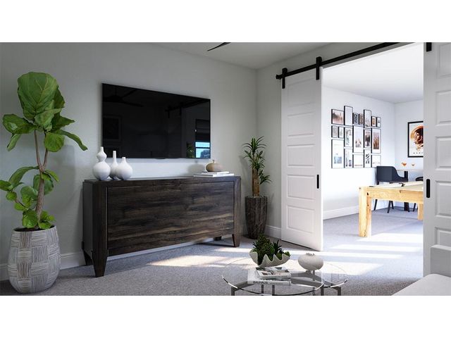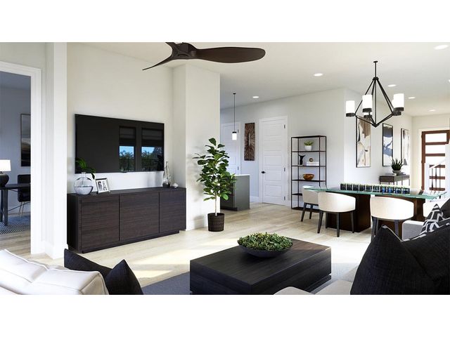 Presenting The Woodwind, an exceptional 2.5-story masterpiece nestled within the coveted Foxfield community, an exciting new enclave near the Domain. This exquisite new construction encompasses a generous 2,956 square feet, offering an expansive layout with 4 bedrooms and 3.5 baths that cater to your every need. Step into a realm of grandeur with 10-foot ceilings gracing the lower level, creating an inviting and open ambiance. The 10-foot kitchen cabinets seamlessly blend style and functionality, while an abundance of natural light floods the interior, highlighting every detail. Discover the pinnacle of luxury with quartz countertops that adorn the heart of your home. Embrace the indulgence of a rain head shower, transforming your daily routine into a rejuvenating escape. Durable wood vinyl floors extend gracefully throughout the downstairs area and a portion of the upper level, striking the perfect balance between elegance and practicality. The primary bedroom, thoughtfully positioned upstairs, offers a private haven of relaxation. An office on the lower level provides a dedicated space for work or study. Unwind and entertain in the media room, a hub for cinematic experiences and memorable gatherings. Enjoy the serene backdrop as your home backs up to the picturesque Walnut Creek Park, inviting you to explore nature's beauty right in your backyard. Every facet of this home has been meticulously designed by an expert interior design team, resulting in a seamless blend of aesthetics and functionality that elevates modern living. Seize this once-in-a-lifetime opportunity to make The Woodwind your forever home. Immerse yourself in a world where contemporary luxury and timeless design harmonize flawlessly. Don't let this remarkable chance slip through your fingers – your dream home awaits.