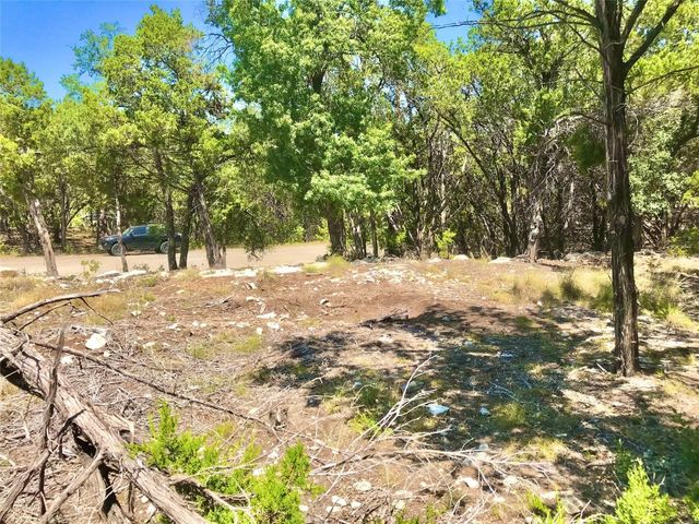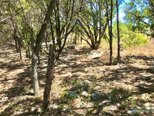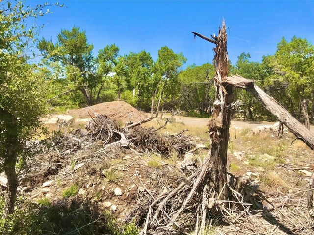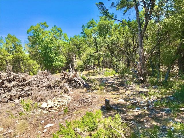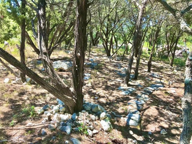 Highly desirable lot located in the Lake Resort community of Lago Vista. Neighbors just one lot away, ensuring you have access to utilities. Beautiful trees and landscaping throughout. Property slopes up slightly from the street before flattening out opening up the possibility for Hill Country views depending on the build style. This is a really special lot with a lot of character and good qualities. Some rock formations on the land were there when owners bought it and the surrounding trees make for a sort of natural hideaway. Pair that with access to private community boat ramp, picnic/bbq areas, playground, swimming pool, and a fish house provide the perfect opportunity for rest and relaxation close to home. This lot has already been partially cleared with a nice flat area ready for building. A driveway has been started as well and they used large boulders dug up from the lot to make a barrier adding to the rustic feel. Owners had plans drawn up by architect & engineer for a beautiful home fit for this property. Those are available for negotiation with an accepted offer.