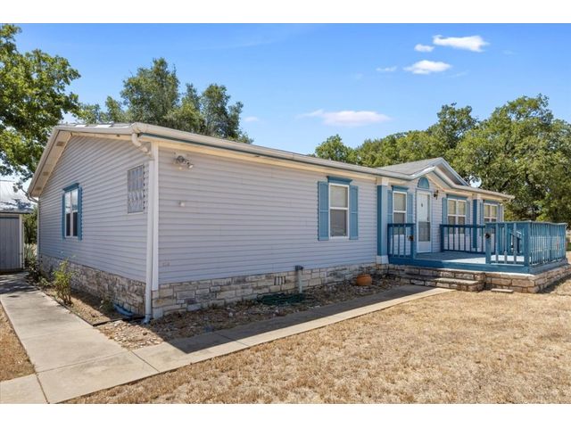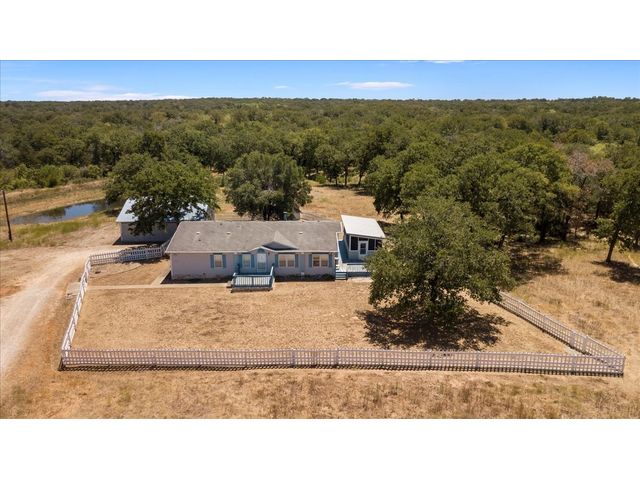 Country Living at its finest! Bring the horses, cows, goats, chickens, dogs, cats and more! Drive through your gated entrance and down the driveway to peace and quiet. Situated near the privacy of the tree line, is a 4 bed, 2 bath, 2,338+/- sq ft (BCAD) Triple Wide Manufactured Home that offers lots of storage and open living space. Enjoy wrap around views from your front, side or back patio. The side patio features an enclosed and screened in hot tub room, perfect for the upcoming chilly Texas fall evenings! The 3 car garage also has a feed/storage room and a large work room/shop. This 10+/- acre property is fenced for livestock and provides a 3 stall barn with a raised center walk way, tack room, 2 exterior pens, working chute and a side overhang, perfect for implement storage or trailer parking.