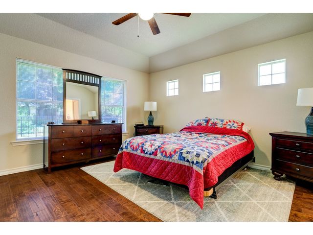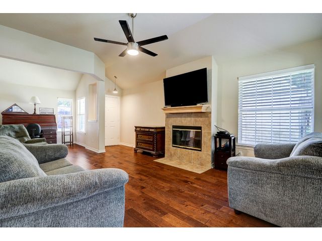 Welcome to this charming one story in a 55+ small community conveniently located to great shops and restaurants! This home offers gorgeous wood floors and tiles throughout and features an open floor plan, perfect for entertaining and cooking. Owner's suite offers lots of natural lighting and looks into the backyard while the ensuite bath features dual sink vanity sinks. The back patio comes with a porch swing and shade, perfect for morning coffee or relaxation. Come check this one out today!