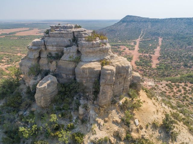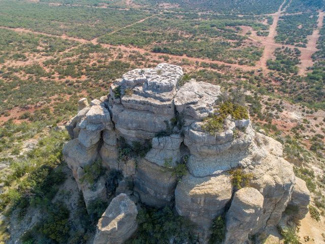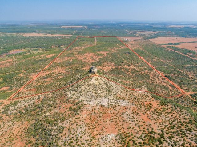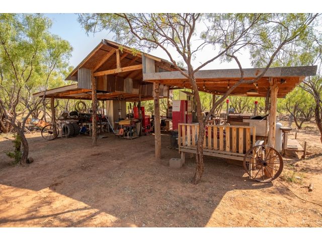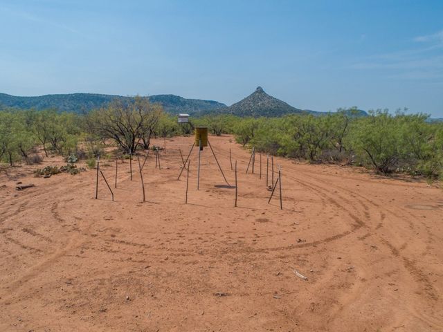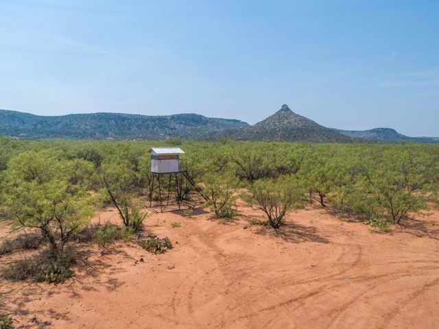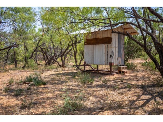 A unique hunting/recreational property with a prominent geologic feature (Nipple Peak), a wet weather creek, multiple ponds, lots of wildlife, two water wells, and a 2015 3 bed /2 bath manufactured home. This property was used extensively by early inhabitants as evidenced by numerous grinding mortars, numerous points, and tools found by the owner. Starting at the south end of the property, one will find the prominent feature, Nipple Peak, which tops out at 2240 ft. One only needs to climb halfway up the peak to have tremendous views over the Colorado River Valley and Callahan Divide to the north. From Nipple Peak, the property slopes downward to the north with the low point being 1900 ft. in the channel of Live Oak Creek. This wet weather creek meanders across the property on the northern third. Two other tributaries cross the property and help supply four small ponds. Along the west boundary, there is a small rise that was likely the site of an Indian camp. There are numerous grinding mortars and evidence of burned rock middens that early people would use to cook the food that was ground in the mortars. In and around this area, the owner has found many points and flakes. In some areas, the ground is littered with flakes and debitage from knapping. The owner has also found points on the side of Nipple Peak as well. Wildlife observed on the property include whitetail deer, feral hogs, turkeys, dove, and even a badger. A few aoudad and axis deer have been observed over the years as well. Centrally located on the property is a 2015 2200sq. ft. 3 bed/2 bath manufactured home. The home has 2x6 framing and is skirted with r-panel. There are two carports, a 3-bay pole barn, and a shop for extra parking and storage. The home is serviced by a water well with a 2500-gallon cistern for extra storage. There is an additional water well at the entrance that could be used to supplement a pond nearby.