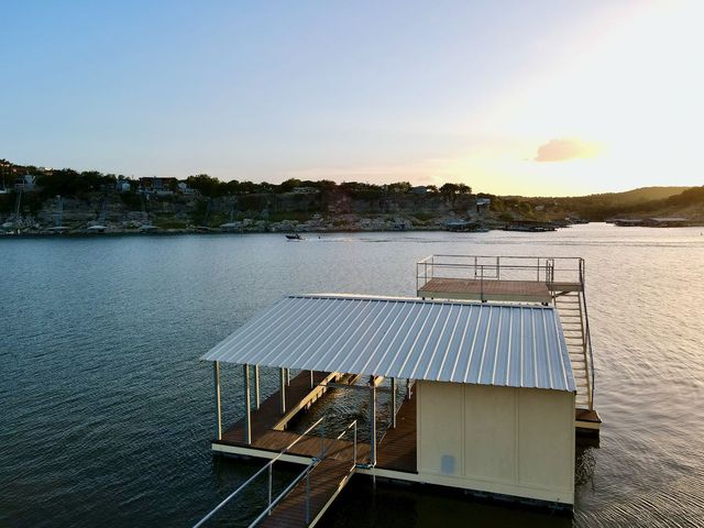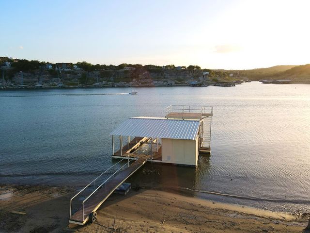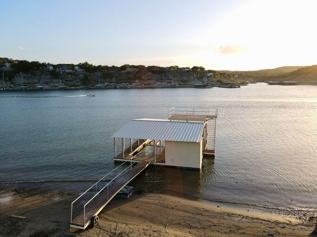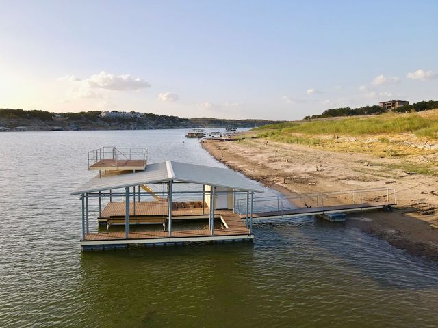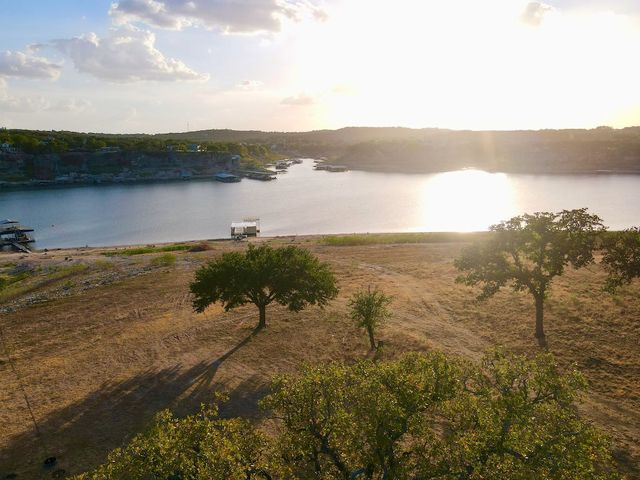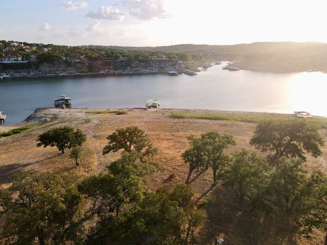 Price Just Reduced on this exceptional Deep Lake Travis Waterfront Property! This 5.244 acre parcel consists of 1.2 acres of buildable lakefront property plus an additional 4.03 acres that would typically be under water, much of it is currently exposed. Cleared, Unimproved lot with 355 Feet of Lake Frontage. The absolute Best Views and Lake Access! This property faces Northeast at the end of the cul-de-sac and you are graced with Southwest Lake Views- Allowing you to enjoy The Golden Hour with those iconic sunsets over Lake Travis in the evening! Quickly hop on the lake with Access from your own private Dock constructed in May 2023 including Boat and Jet Ski lifts, a storage closet with Generator and Dock/Roof Top Lounge area. Build your Dream Home or Vacation Style Lake House on this cleared lot- Electricity, water and city sewer available! Situated directly across from Briarcliff Marina makes for a very convenient spot to fuel your boat or jet ski's up with Gas. Boat or Paddle Board to The Lighthouse Restaurant across the Lake for dinner and music. Just a 15 minute drive to Lago Vista Shopping/Dining/Entertainment, 30 minutes to Leander and 30 miles to The Domain/Q2 Stadium. Highly Rated Lago Vista Schools! This is the chance of a lifetime to own 5+ acres of deep-Lake Travis Water Access, even during an exceptional drought. Refer to map for approximate property extents.