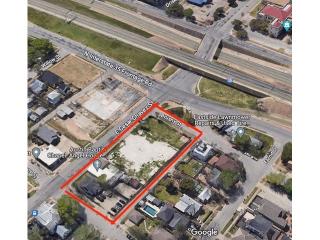Corner Lot on Cesar Chavez and IH35. One of only two lots with buildings on the entire block. The rest of the land is vacant commercial ready for assembly! 1200 SF office building is in good shape and has brought approximately $45K per year in rent. Now vacant.