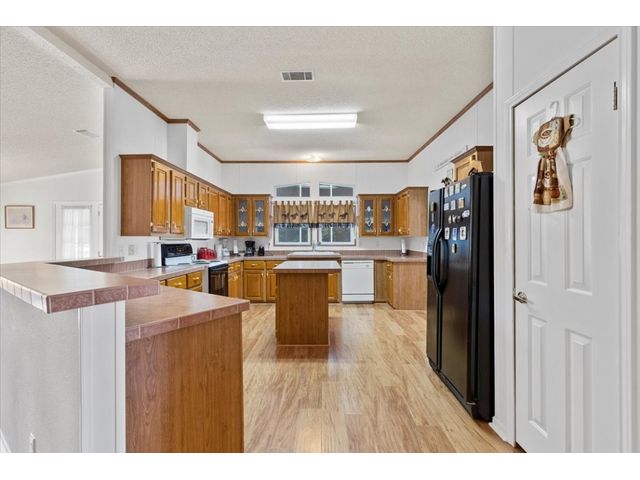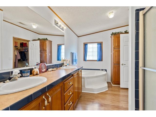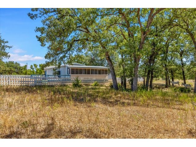 Country Living at its finest! Bring the horses, cows, goats, chickens, dogs, cats and more! Drive through your gated entrance and down the driveway to peace and quiet. Situated near the privacy of the tree line, is a 4 bed, 2 bath, 2,338+/- sq ft (BCAD) Triple Wide Manufactured Home that offers lots of storage and open living space. Enjoy wrap around views from your front, side or back patio. The side patio features an enclosed and screened in hot tub room, perfect for the upcoming chilly Texas fall evenings! The 3 car garage also has a feed/storage room and a large work room/shop. This 10+/- acre property is fenced for livestock and provides a 3 stall barn with a raised center walk way, tack room, 2 exterior pens, working chute and a side overhang, perfect for implement storage or trailer parking.