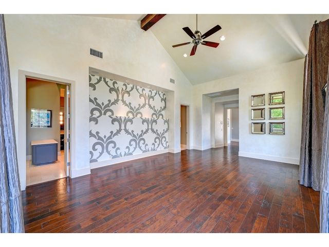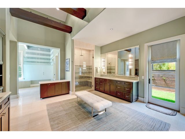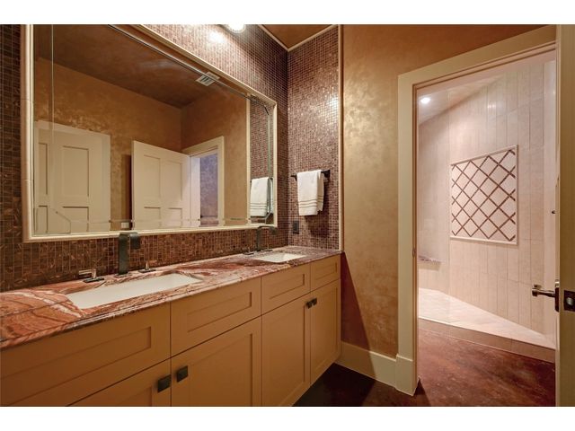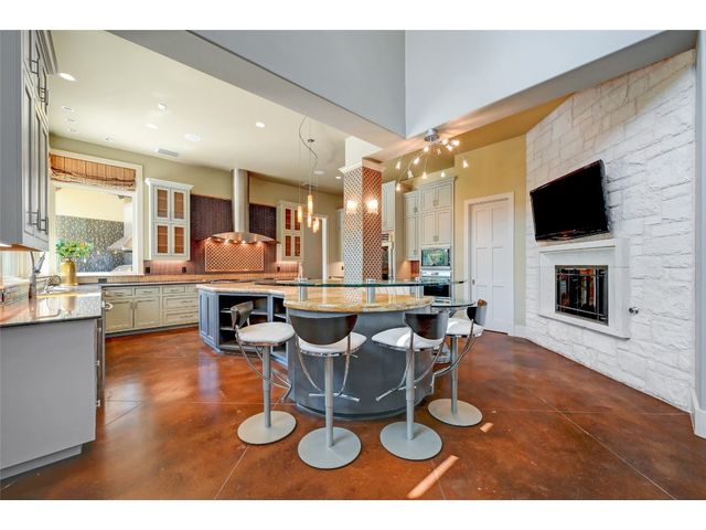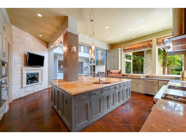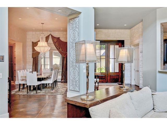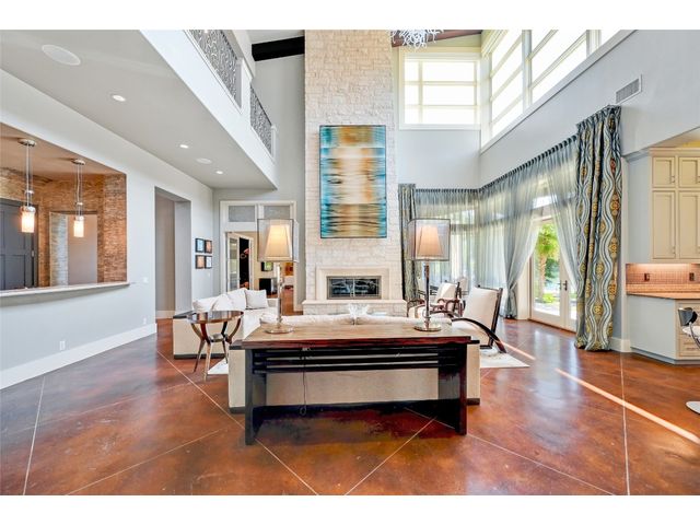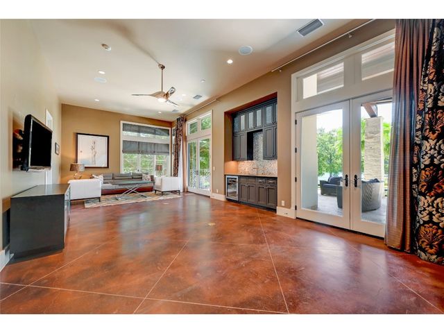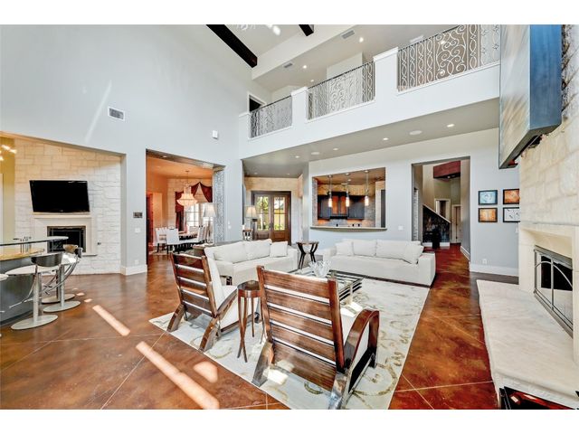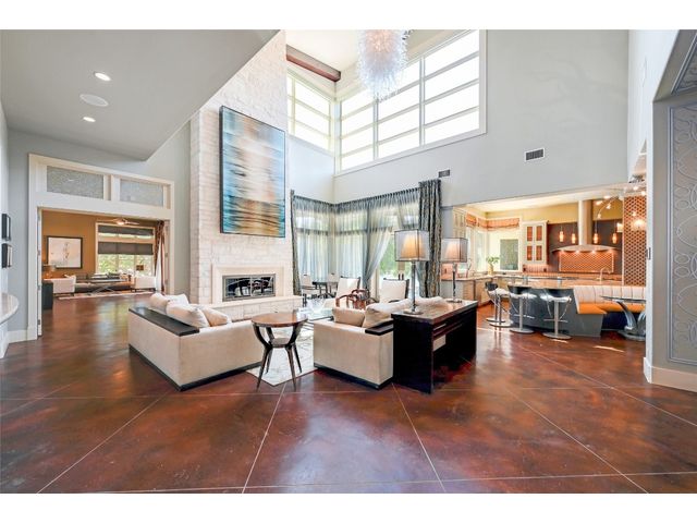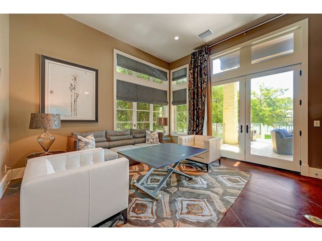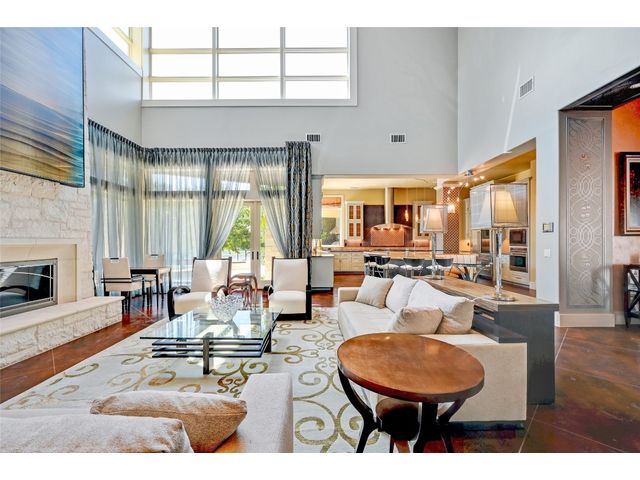 The epitome of resort-style Lake Austin living. Situated on a 1.71 acre level lot in the Landing at Greenshores, this stunning property offers 200 +/- feet of waterfront in an exclusive gated community. Primary and one guest bed on the main level/4 additional beds plus private office upstairs. Large gameroom and media room outfitted with 8 bunk beds. Beautiful dining area is complete with a wine room and opens to the main living area boasting soaring ceilings, incredible views and full-sized bar. Chef-worthy kitchen with fireplace, bar seating and a custom built-in breakfast booth. Primary bathroom fully equipped with two separate vanity areas, kitchenette with mini fridge, huge walk-in closet with stackable washer/dryer hookups and gorgeous lake views right from the bathtub! 3 gas/wood fireplaces in living room, kitchen and outdoor. An entertainer's dream, outdoor amenities include covered lounge area, pool/hot tub, two-story boat dock and outdoor kitchen with Twin Eagles grill. More than ample parking accommodations available by way of 3 garage spaces, driveway and common area just steps away that allows for 40+ spaces for special occasions. Subdivision is adjacent to Lakeside Park, which, in addition to its lake access, has a sand volleyball court, playscape and picnic tables and can be reserved. Also conveniently located near popular Ski Shores and Emma Long Park. All 5 interior HVAC units replaced in the Summer of 2023. This property is truly one of a kind.