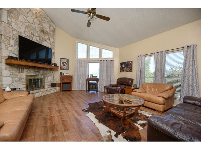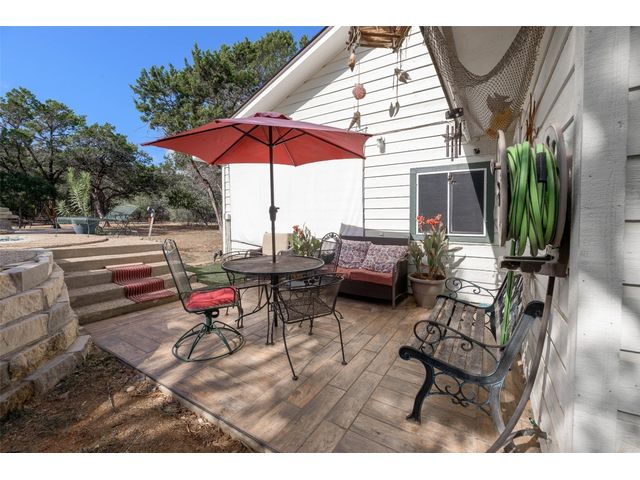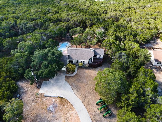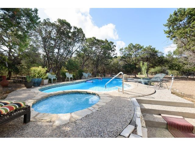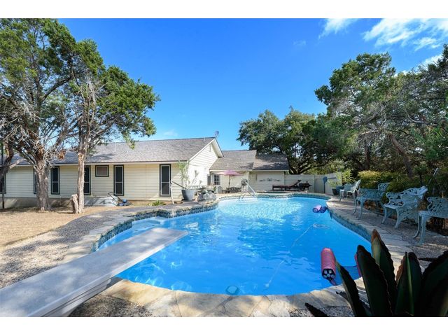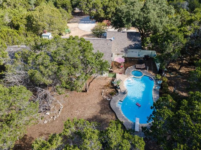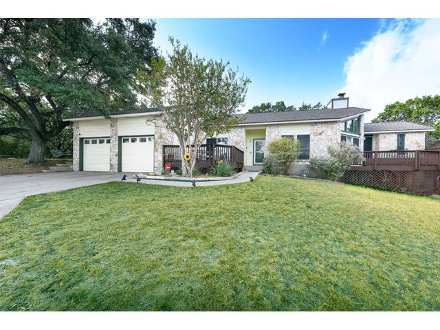 MOTIVATED SELLERS!! Beautifully kept home with numerous updates such as brand new roof, HVAC and pool pump/filtration system. Pool heats almost instantly with the oversized unit installed by owner. Split level with all bedrooms on the "upper split". Refrigerator to convey. Property backs up to 1,000 acre ranch with stunning Hill Country views. One deck off kitchen for outdoor dining option. Another deck off the living room as well as a third deck off master bedroom. Master has en suite bath/closet/dressing area. Fresh paint and luxury vinyl flooring throughout. New stonework walkways from garage to fully fenced backyard with pool and hot tub, for the ultimate relax and unwind spot. Oversized garage with TONS of storage space. Property located in back of community, which means little to no traffic. Great bones, with room to make it your own.