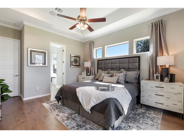 Beautiful 20’ ceilings at entry, foyer, and living room. Master bedroom, 2nd guest bedroom, formal dining and 2nd full bathroom on the first floor. Open railings from second floor, faux wooden blinds, upgraded kitchen cabinetry to 10ft, and wood floors throughout the first floor. Open game room upstairs. Brushy Creek walking trails and Champion Park within walking distance. High rated school district. Estimated Completion Spring 2024.