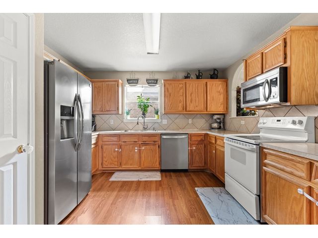 This remarkable residence boasts 3 bedrooms and 2 baths, offering a generous 1924 sq. ft. of living space. The rooms are thoughtfully designed, exuding spaciousness and comfort, complement by elegant laminate flooring throughout. With two inviting living room areas and a double-sided fireplace, this home is an entertainer's dream, ready to host gathering for friend and family. The well-appointed kitchen and ample storage space enhance convenience, while the charming dining area add a touch of sophistication. Step outside to a backyard primed for outdoor festivities and relaxation.