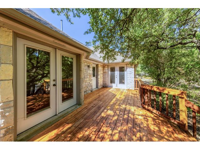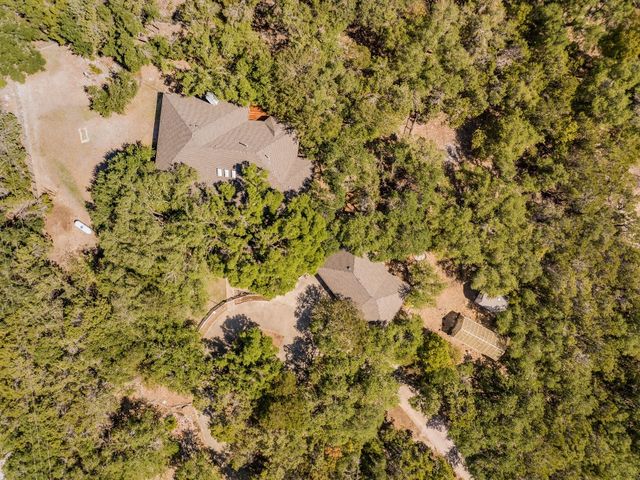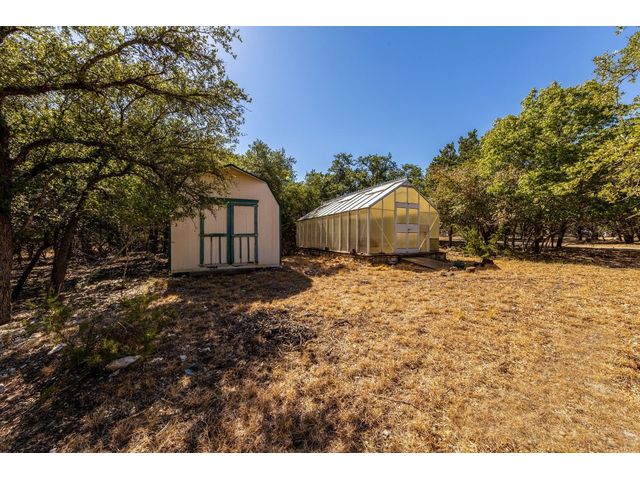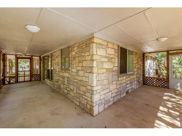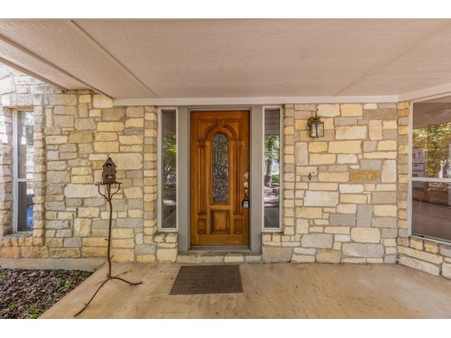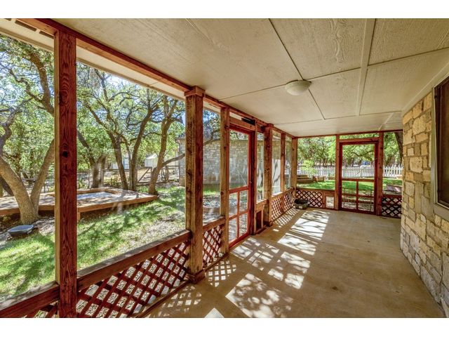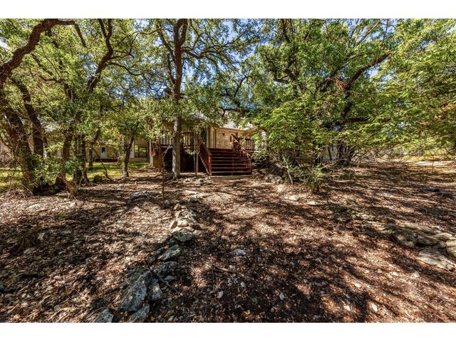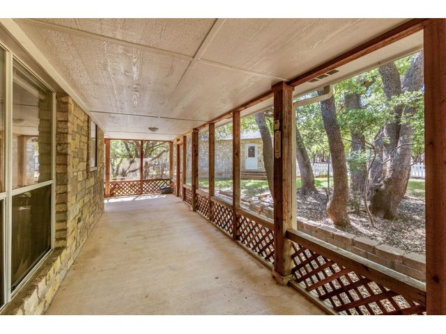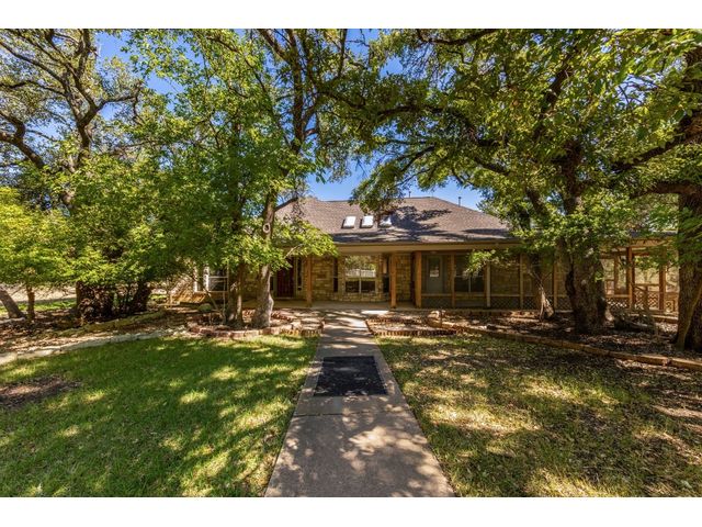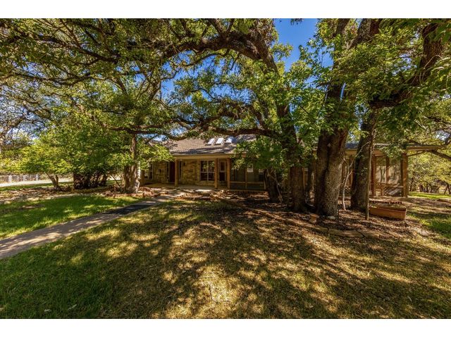 Country living on 5 acres with immediate access to city amenities. This is a rare gem of a find! This property has an abundance of natural beauty with a wet weather creek and plenty of space to spread out. The home features 3 large bedrooms all with walk in closets. Primary bath recently updated with granite countertops, walk in shower and soaker tub. Secondary rooms have jack and jill bathroom. The Texas sized kitchen has ample cabinetry, walk in pantry and large eat in area that could be used as primary dining which would allow formal dining room to act as a second living space. The wrap around screened porch in front is perfect for enjoying the outdoors and nature watching. The back deck overlooking the wet weather creek can be accessed through the living room, primary bedroom, or half bath. 3 car garage is detached and has staircase leading to walk up attic for additional storage or could be finished out for bonus space. Additional exterior features include circular driveway with plenty of parking, greenhouse, and slab/deck/electric for hot tub. The home is enclosed within a fenced area but the property line extends much further into the wooded area. Homes like these do not come around often!