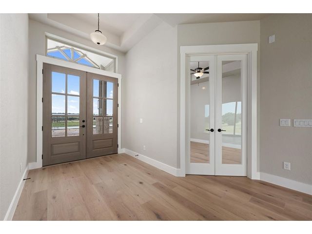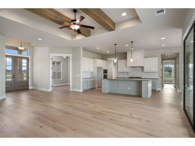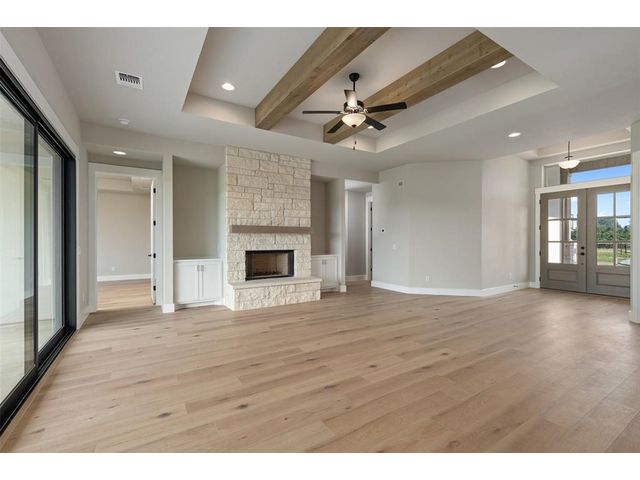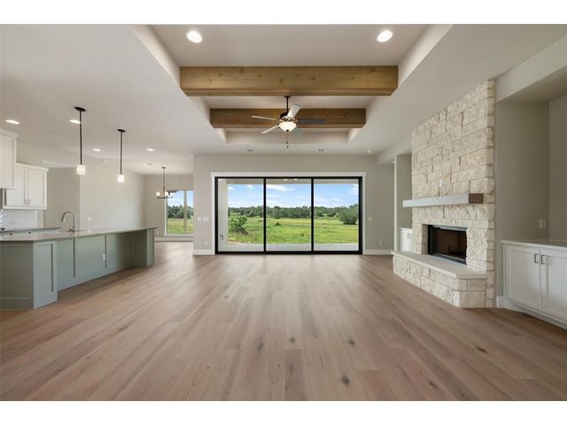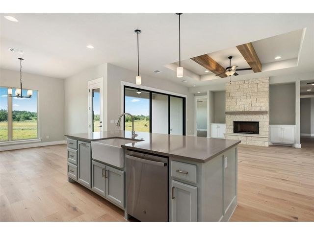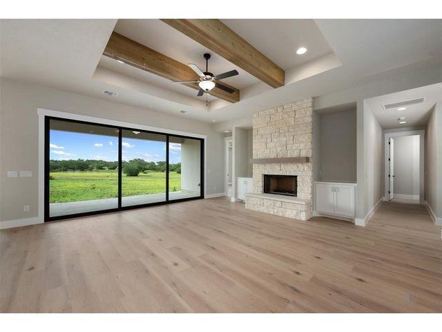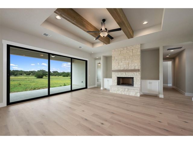 SELLER PAID 3/2/1/ INTEREST BUY DOWN NOTE - Days on the market reflect the construction time. Located in beautiful gated community of Miller Creek about an hour north of Austin between Lampasas and Briggs. 70 acreage tracts ranging from 12-95 acres. Inspiring views of the storied Hill Country are framed by gently rolling hills crowned with venerable hardwood groves. Premier lots with Agricultural exemption -12 acres with an agricultural exemption - this beautiful single story home by Grand Endeavor is loaded with features and upgrades sought after by discerning buyers. Boasting an expansive open living and dining space highlighted by the wood beamed tray ceiling, floor to ceiling stone fireplace flanked by built-in cabinets and a wall of sliders opening to the backyard space. Chef's will delight in this opulent kitchen with custom cabinetry, built-in stainless appliances, gorgeous tile backsplash, large eat-up island, farmhouse sink and spacious breakfast area. A private study is to the left of the double door glass entry, rich hardwoods run throughout this entire property and the spacious baths boast tons of storage and tile flooring. Your retreat of a primary suite offers a tray ceiling, and the bath has dual vanities, a soaking tub, separate shower and massive closet. The covered rear patio is the perfect place to spend your time, build the backyard of your dreams with ample space to build a pool. Enjoy the serene nature of the Texas countryside - you'll love it here! Call the listing agent for details of the plans and showing instructions.