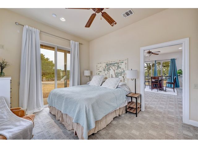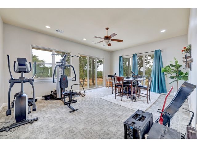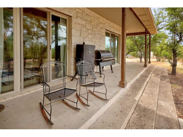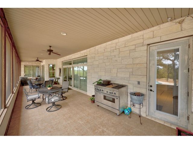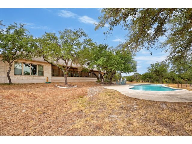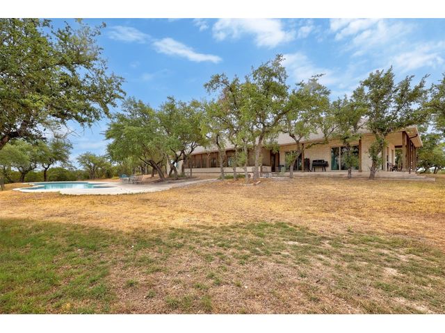 Exquisite Custom Hill Country Retreat with Breathtaking Balcones Canyonlands Views, Nestled on 21 Unrestricted Acres, Complete with a 40x60 All-Metal Workshop. Perched atop this magnificent property are sweeping vistas that stretch for miles, offering awe-inspiring sunsets as your daily backdrop. This spacious single-story gem boasts 3 bedrooms, 2 baths, an office, and a versatile game room. Step onto the expansive screened porch, perfect for gatherings and leisurely moments, while overlooking the glistening swimming pool, adding a touch of luxury to your outdoor living experience. Inside, the home features dramatic high ceilings, meticulously crafted custom cabinetry, and a kitchen adorned with double islands, double ovens, a gas cooktop, and a warming drawer. The owner's suite is a sanctuary unto itself, showcasing a generously sized bedroom with abundant windows, a spacious walk-in shower, a relaxing garden tub, and an elegant double vanity. Each secondary bedroom offers ample closet space to satisfy all your storage needs. This home's open-concept design and fluid floorplan create an entertainer's dream, while the oversized 2-car garage provides ample space for your vehicles and hobbies. The serene surroundings offer tranquility and are teeming with wildlife, providing a peaceful escape from the hustle and bustle of daily life. Enjoy the utmost privacy of unrestricted acreage, while still being conveniently located near the LCRA's Gloster Bend Park and boat ramp. This property operates on a well and septic system, ensuring self-sufficiency and minimal environmental impact. Upgrades include: Roof Shingles Replaced 8/23, Water Filtration System, Central Vacuum System, & Recent Pool Pump Replacement. In summary, this property represents a rare opportunity to own a beautifully crafted custom home on a sprawling piece of the Hill Country, where privacy, natural beauty, and luxurious living converge to create your perfect sanctuary. Don't miss this opportunity.