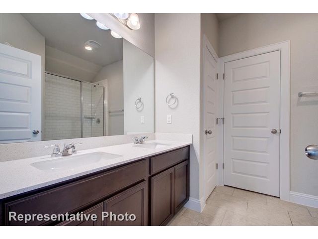 MLS# 2339475 - Built by Brohn Homes - September completion! ~ Elevate your living experience in this captivating two-story open-plan home, boasting an added 4th bedroom and a upgraded full bath downstairs for added convenience. The kitchen is a culinary haven with granite countertops, a large island, 42-inch cabinet uppers, and stainless steel appliances including refrigerator. The spacious primary suite is a sanctuary of luxury, featuring a walk-in closet with an added door, a dual vanity, a walk-in mud set shower. Enjoy the comfort of ceiling fans in the living room, loft, and primary bedroom, along with blinds throughout. Additional features include a mud room off the garage, 8-foot doors on the first floor, a gas drop for BBQ, and much more! Benefit from an exceptionally low tax rate, with front and back yard mowing and edging seamlessly included in the HOA fees. Photos for representation only!