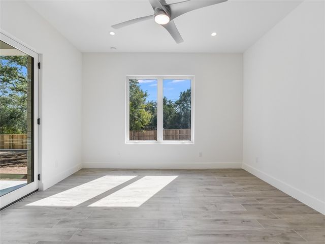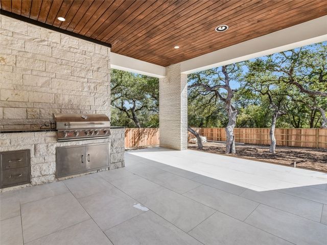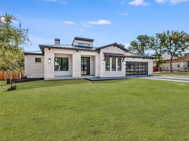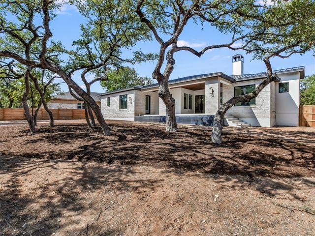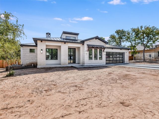 Welcome to this stunning custom one-story home in the Woodcreek Golf Community of Wimberley, Texas. This modern home features a top-of-the-line finish, with four bedrooms and three full baths, offering a crisp, elegant, spacious, and inviting living space. As you step inside, you'll be immediately drawn to the elegant interior, creating a warm and welcoming atmosphere. The open floor plan connects the family room, dining area, and kitchen, ideal for gatherings. The kitchen is a chef's delight with sleek countertops, modern KitchenAid appliances, ample storage, and a handy butler's pantry. The family room is a cozy retreat filled with natural light through large Marvin windows. The main suite is a private haven with a luxurious en-suite bathroom boasting a soaking tub, separate shower, and a generous walk-in closet. Three additional bedrooms with a walking closet provide comfort for family or guests. Outside, the backyard offers a perfect space for outdoor enjoyment. The Woodcreek community provides amenities like parks, walking trails, and golf. Conveniently located just five minutes from Historic Wimberley Square, Lions Market, Jacobs Well, Blue Hole Regional Park, wineries, stores, and restaurants, this home combines tranquility with accessibility. Explore the local scene, unique shops, and natural beauty and experience the blend of elegance, comfort, and convenience this Wimberley gem offers.