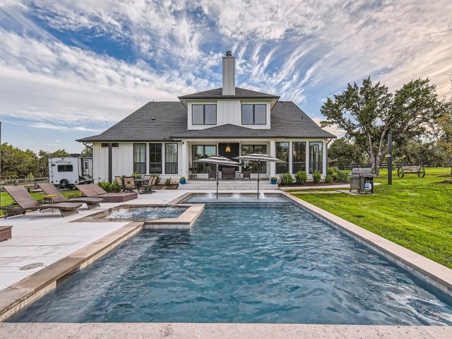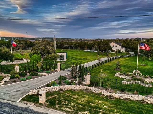 This Stunning retreat on 5.48 acres of peaceful beauty & privacy truly is a hidden jewel. This multi-generational hobby farm property is just 25 mins from DT Austin. This property combines Country Charm w/Simple Elegance & Endless possibilities. Both homes are a blank canvas awaiting your unique touch. The focal point of this estate is the 2 large 3,500+ sq ft homes each boasting gourmet kitchens, high ceilings & versatile floor plans. On the WEST side of the property is the 2020 built, 3,528 sq ft primary modern farmhouse. The home features an elegant pool/spa & offers plenty of room for future additions such as a basketball/pickleball court. This home features 5 beds, 4 full baths, mult-office spaces, 2 dining areas, 3 living areas, media room, 2 car gar & boat/rv parking pad. On the EAST side of the property across the 90' motor court is the recently renovated 3,652 sq ft 2nd Home/Party-Barn & Horse Barn. This home boasts an open layout that seamlessly merges indoor & outdoor living, perfect for entertaining. This home offers plenty of flexible living space with 1st & 2nd fl suites, library/office, exercise room & more. The rear Juliet balcony has a beautiful view overlooking the Fruit Tree orchard. The massive 24’x48’ partially covered 2nd fl terrace offers panoramic views of the Texas Hill Country & Gorgeous Sunsets. This home has an attached 4 car heated/cooled garage w/epoxy floors. The 4-stall, 2023 built horse barn offers ample space for your farm needs w/Chicken Oasis that is ready for use. Bring your horses, alpacas & goats to join the residential Donkey family! This property includes a 48-zone irrigation system, concrete edged driveway & a 5k gal well storage tank. This property is before the Bear Creek low water crossing meaning you will never be stuck. New Nutty Brown HEB, Costco & Sunset Valley shopping center w/in mins. The rear 5.29 acres is open to selling as well to have nearly 11 acres. Don’t miss out on this rare family compound opportunity!