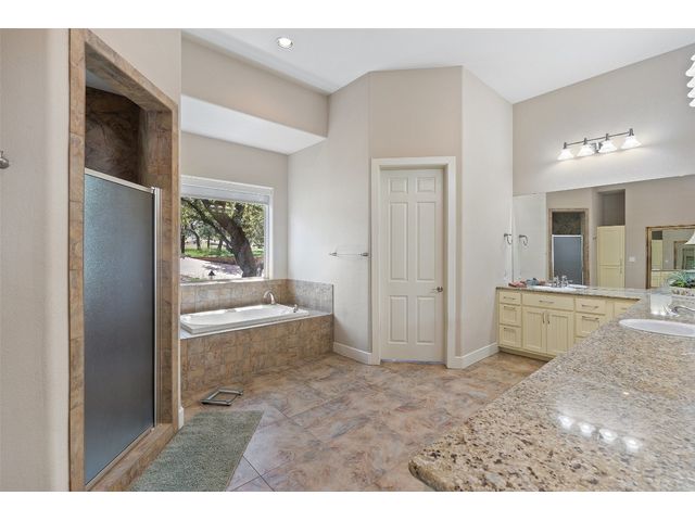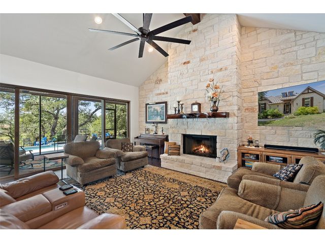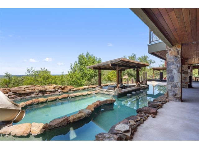 OFFERED BELOW INDEPENDENT APPRAISAL! Welcome to Scenic Ridge Retreat, the ultimate in hill country living with 27.5 ag exempt acres and dual residences in Spicewood, TX. Horses, cattle, exotics, and domestic animals are welcome. The property boasts many types of trees and terrain, includes two storage barns, a reinforced pond, three sides high fenced, fenced pastures, three electric gates, a road system throughout, and two wells with close to 15,000 gallons of storage. The property is nestled between all - only minutes to Spicewood airport and 37 miles to Austin Bergstrom International Airport. Hill Country Galleria in Bee Cave is located only 17 miles away and sits only 16 miles to the lakes in Marble Falls. The custom-built 3/3.5 (5,145 sq. ft.) main residence offers a resort-inspired pool with swim-up bar, 2-story water slide, and outdoor kitchen, along with a spacious outdoor living space. The native-stone-clad home enjoys outdoor access from both levels, with french doors opening out to the lower patio and upper veranda with miles of views. The main-floor primary suite enjoys a large walk-in shower, whirlpool tub, oversized walk-in closet and private office. The lower floor features a complete guest suite with full kitchen, dining, living room, laundry, bedroom, and en suite bath. The guest house is a 2/2 (2,443 sq. ft.) built in 2019, includes a screened porch, modern-style pool, a study, sauna, and a three-car garage that features a small air-conditioned studio. The secondary home is the perfect retreat for guests, care-givers, or multi-generational family units.