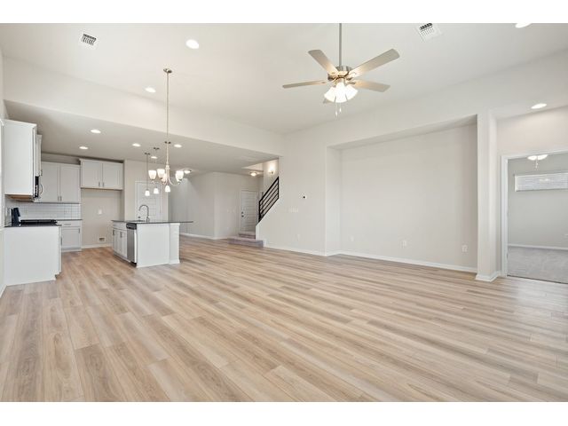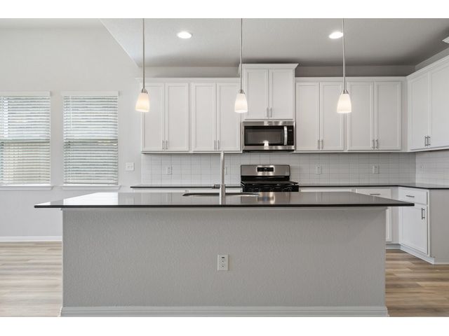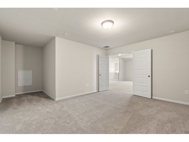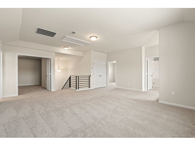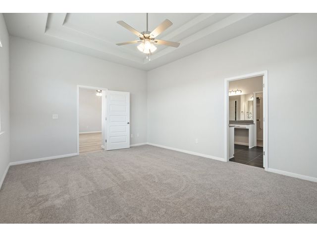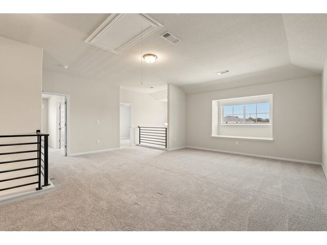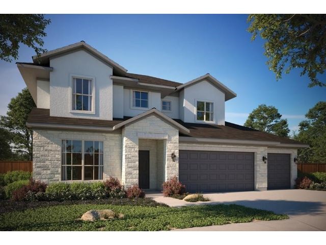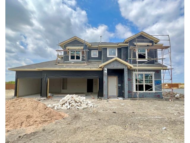 Interest rates as low as 3.875% in the first year, available on select homes for qualified buyers with Milestone Community Builders' preferred mortgage company. See sales representative for details. With 20’ ceilings upon entering & 12’ ceilings throughout. Huge quartz island, open to living & dining. 12’ tray ceilings in primary bedroom w/ his & hers sinks & oversized walk-in shower. Massive primary closet, opening to utility room. Upstairs you will find jack & jill bedrooms, game room & media room, pre-wired w/ 5.1 surround sound. RevWood flooring from entry to back door. The outdoor living space is complete with a covered patio, gas drop for grilling, and full landscape package.