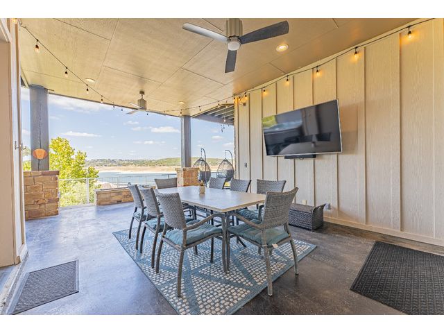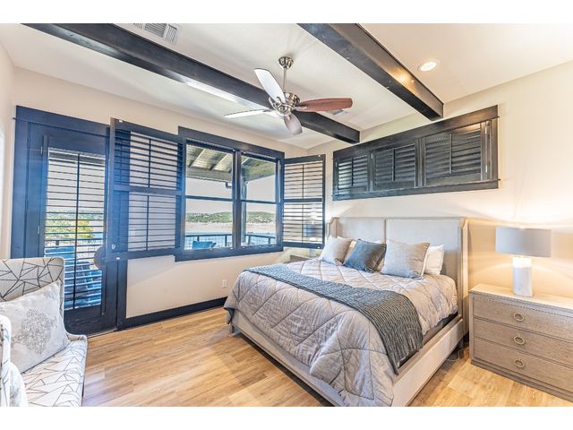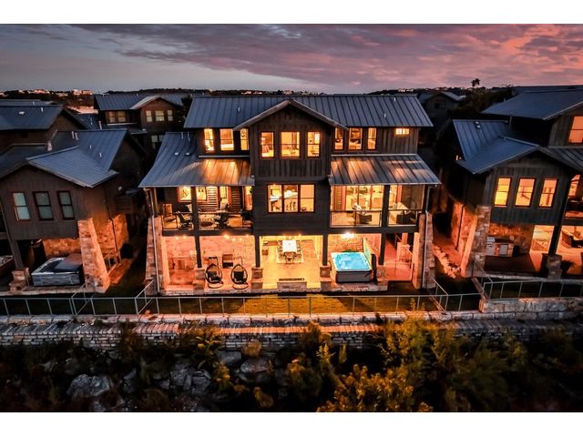 Waterfront Retreat on Lake Travis:A Remodeled Oasis-Nestled on the shores of Lake Travis, newly remodeled waterfront home is a testament to luxury, comfort, modern design. Short Term Rentals ALLOWED-Lock & Leave -All Fees Included - 4-bedroom, 3-full bath, 2-half bath residence is a true haven for those seeking a blend of elegance and natural beauty. Newly installed flooring that spans the main living areas, exuding both durability and timeless charm. The heart of the home lies in the open-concept kitchen and living space, where panoramic views of the lake serve as a stunning backdrop. An inviting fireplace graces the living area, providing a cozy focal point for gatherings during cooler evenings. With abundant natural light pouring in through large windows. The master suite is a true sanctuary, boasting a custom-designed closet.The en-suite bath offers a spa-like retreat, complete with a soaking tub, and a separate shower. In addition to the master suite, this home features three spacious bedrooms, each thoughtfully designed with water views and an abundance of natural light. The screened-in back porch provides a tranquil setting for enjoying meals al fresco, while taking in the sights and sounds of the lake. The outdoor space is undoubtedly the new jacuzzi, strategically positioned to offer panoramic views of Lake Travis, along with a commercial grade ice maker. The two-car garage has been thoughtfully repurposed into a bunk room, complete with plush new carpeting. This versatile space offers a cozy retreat for guests or an ideal play area for younger family members. A newly installed central air conditioning system ensures that comfort is maintained throughout the year. With its impeccable attention to detail, luxurious amenities, and unparalleled waterfront location on Lake Travis, Marina in Subdivision just a golf cart ride away, Pool, Barn, Pickle Ball Courts Lake Travis ISD