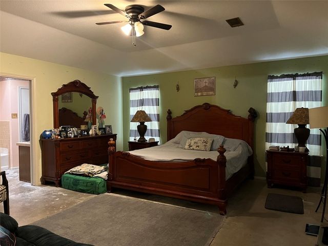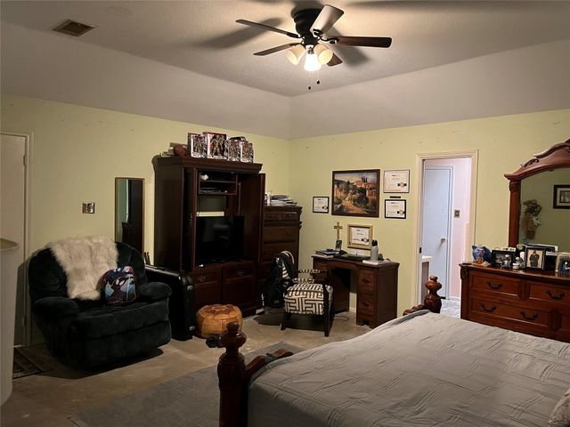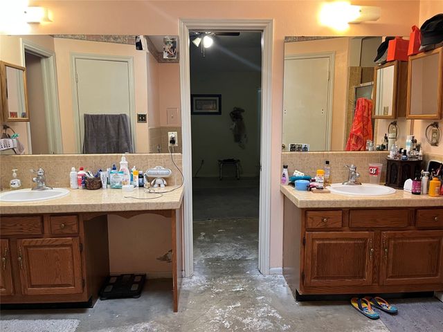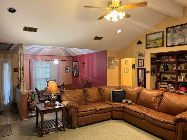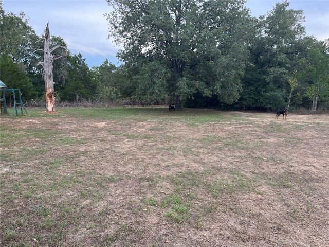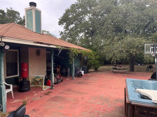 Home on 4.748 Acres with Gorgeous Trees that Feels Very Private. 3 Bedroom, 2 Bathroom Mother-In-Law floorpan with a 2 car attached garage and a separate metal carport for additional covered parking. Primary Bathroom has separate vanities, separate shower, garden/jetted tub, and two-walk in closets. Secondary Bedrooms share a bathroom that also has a separate shower and tub. Large living area with wood burning fireplace. Formal Dining Area and Breakfast Area just off the kitchen. Large Pantry and Kitchen features a center island. Tiled counter tops throughout the home. Great back patio area that is partially covered and perfect for entertaining guests and family. Above ground pool and Hot Tub are no longer active but this back yard is perfect for a swimming pool.