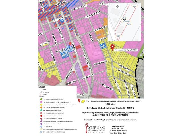 Discover your ideal opportunity with this vacant lot in Elgin, Texas. This 0.496-acre lot boasts a clear canvas with R-3 Zoning, allowing you to bring your dream home to life. Zoning allows for Single-Family, Duplex, & Zero Lot Line Two Family District, Modular Homes are allowed but not a mobile home. The seller has several floor plans that will work well on this lot they are happy to share with a potential buyer. Located just minutes from downtown Elgin, this property offers convenience at its best. Situated in close proximity to shopping, restaurants, and the 290 freeway, you'll have easy access to all your daily needs. Additionally, it's within walking distance to Thomas Memorial Park, making it perfect for nature enthusiasts. The lot is also a short stroll away from a playground. Don't miss out on this fantastic opportunity to own a piece of Elgin that combines location, space, and freedom! Buyer and buyer's agent to check all information regarding zoning with the City of Elgin.