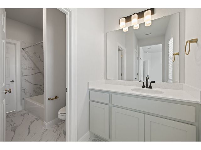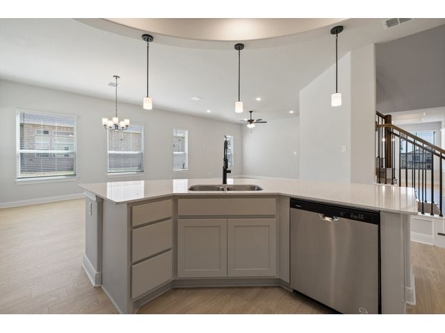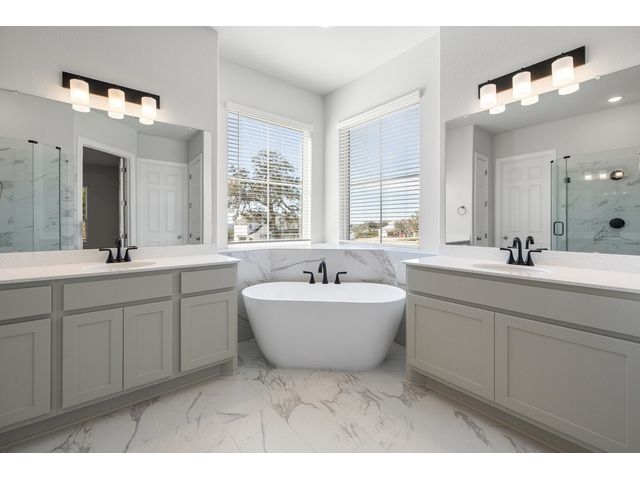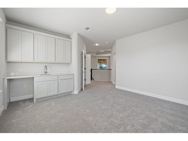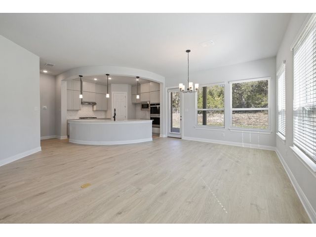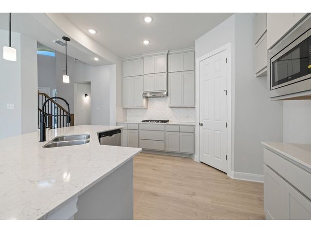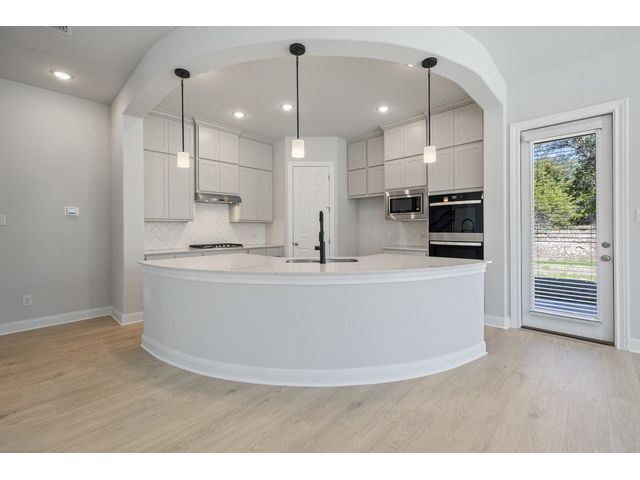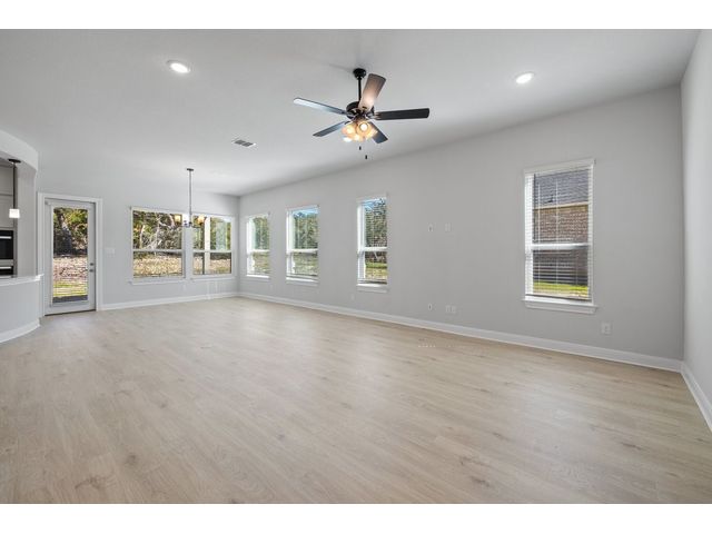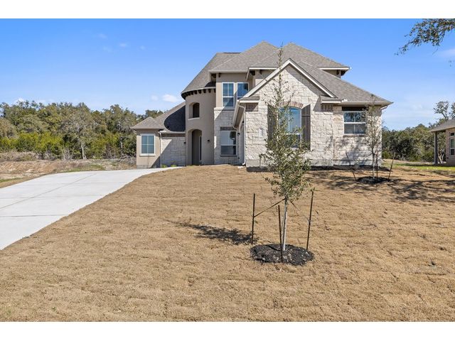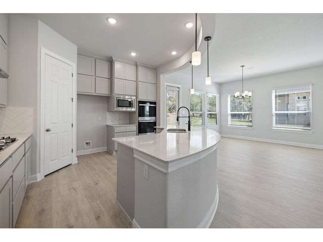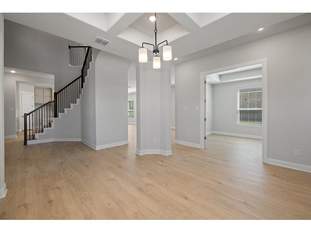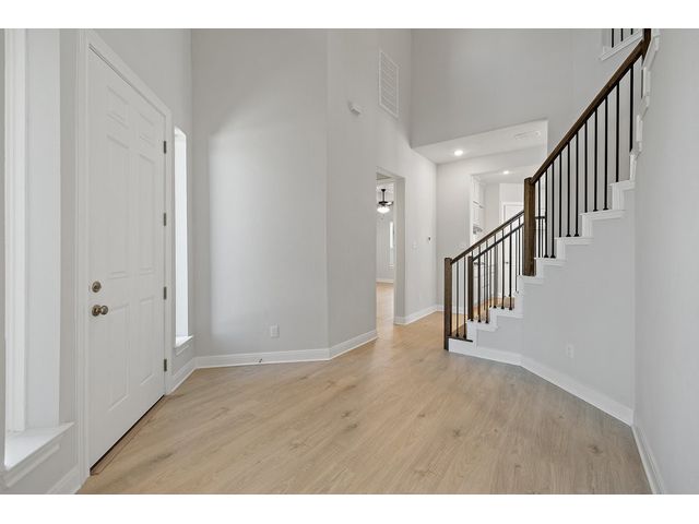 This beautiful two story home has an open layout with large windows that let in copious amounts of natural light in not only the main living space but also the primary and secondary bedrooms. The home has so many upgrades that make this house feel luxurious while not taking away from the ‘home’ feel that the house provides. Some of the noteable upgrades include a wet bar in the game room right outside the media room, a utility sink in the spacious laundry room, a butlers pantry area between the kitchen and dining room, and a large covered patio with a gas drop for outdoor grilling overlooking the beautiful depth of the acre. The home stuns from the moment you walk in with tall ceilings at the foyer showcasing the hand-stained railings with a little sneak peek of the beautiful kitchen tucked behind the stairs. This is our favorite floor plan for a reason, and its back in our quick-move-in roster.