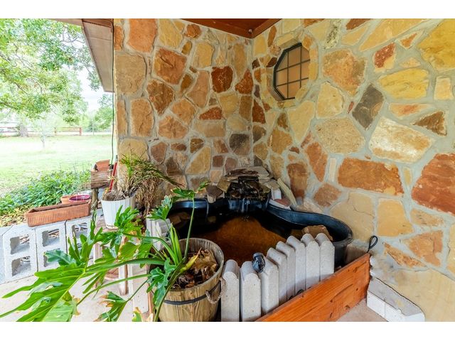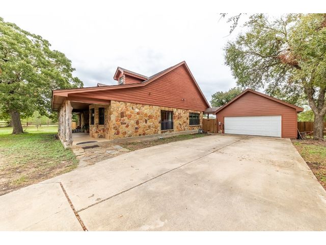 ***HUGE PRICE REDUCTION!!! Country living near City Amenities. NO HOA. Bring your animals. Don't miss out on making this Private Retreat Yours!!! Gorgeous Stone and Log sided Home on a quiet 1.68 acres Privacy Fenced Estate. Enjoy your morning coffee on one of two covered porches. Koi pond greets you at the Entry on the Front Porch. Custom Slate floors in the Wet Areas. Stunning REAL Wood Kitchen Cabinets with gorgeous Granite counters. Cozy up to the glowing fire in the River Rock Fireplace. Soaring ceilings.This home is 1.5 story with all Beds & Baths on the main floor. Huge Loft area is accessed via wrought iron spiral staircase. Loft features Dormer windows & electric fireplace. Master Bedroom has Double French doors leading to the private covered Patio. Spacious Master Bedroom and Bath with Dual Vanity sinks and Dual closets. Deep Walk in Shower. Relax in the Jetted Soaking Tub making this a true “SPA” like retreat. Master bedroom is also home to the Huge Gun cabinet which conveys with the sale. Detached 2- car garage- Workshop. Added Bonus: Tesla Plug-in charging station at the front of the garage. Mature trees shade the property front and back,Raised Garden beds and wet weather pond, are just a few of the special features in this expansive backyard. Too many beautiful custom amenities to list. Just minutes to the ABIA, TESLA or Shopping in Bastrop.