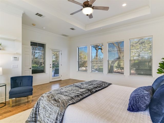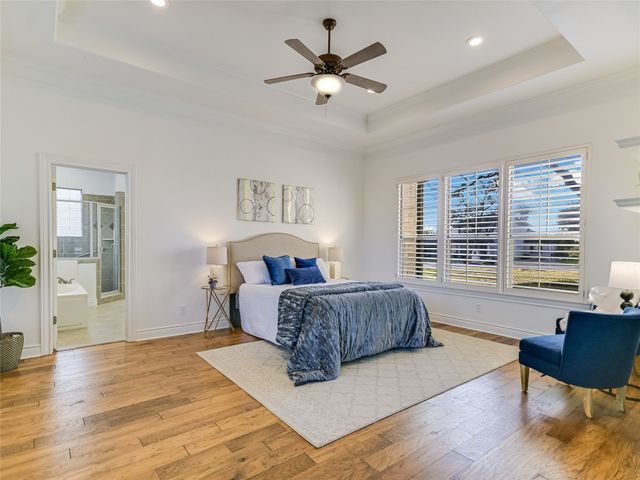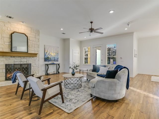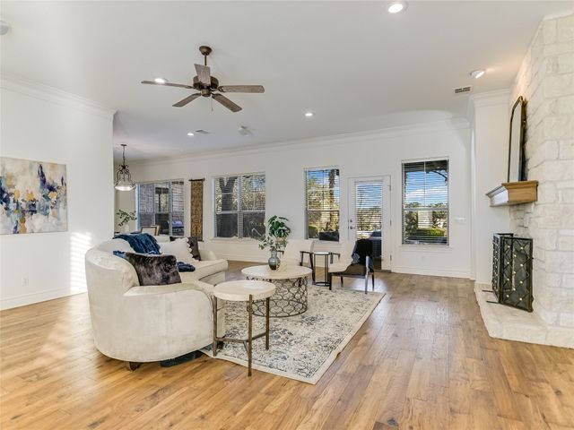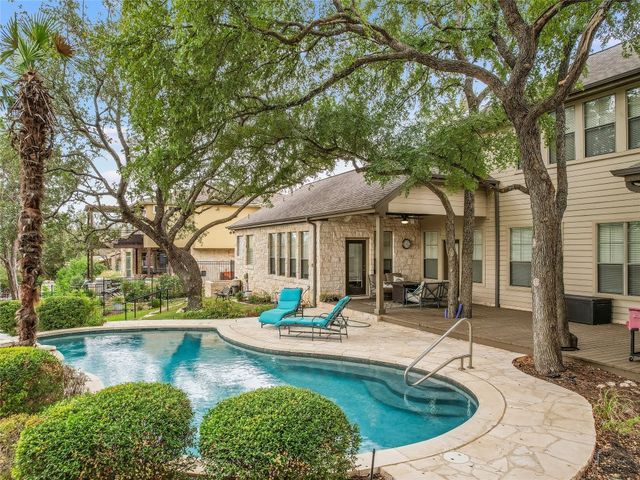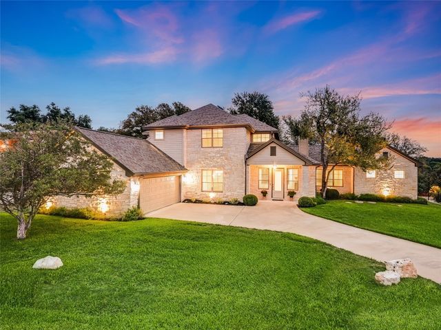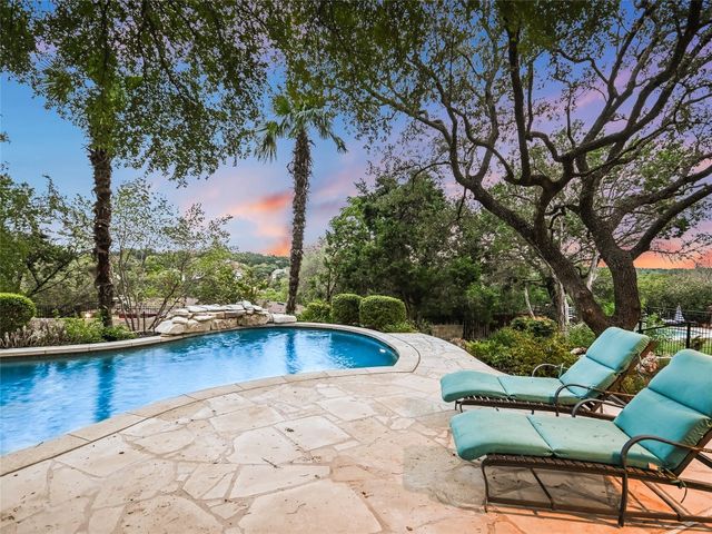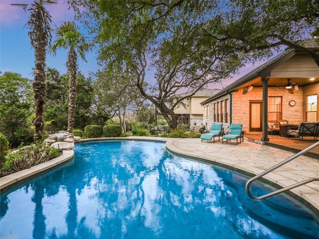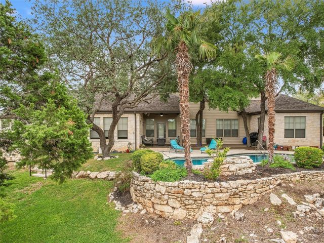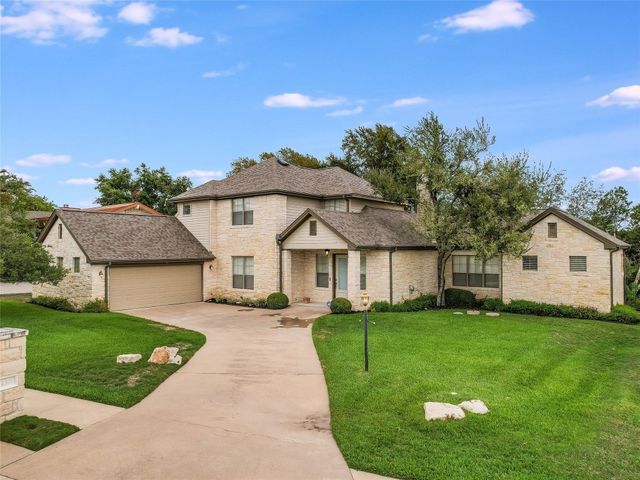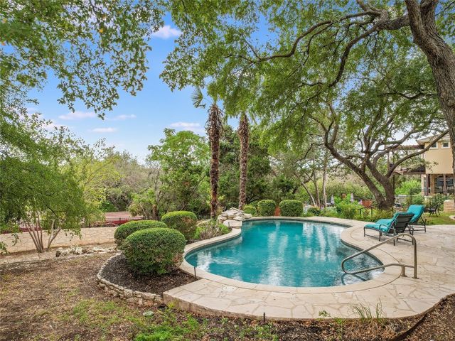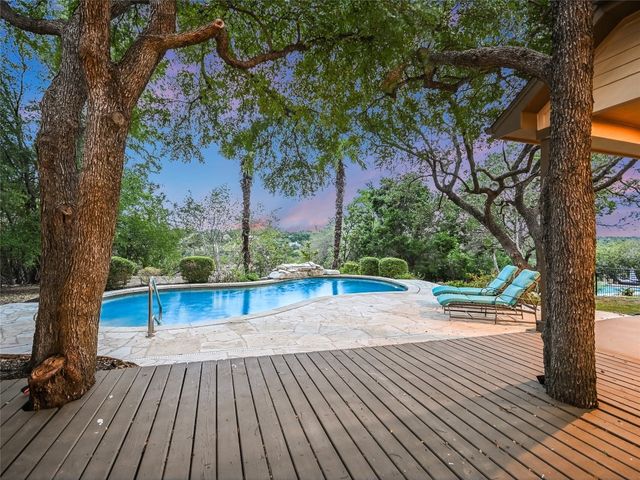 Nestled in the serene enclave of Old Lakeway, this exquisite residence on a spacious .39-acre flat lot offers the perfect blend of comfort and elegance. Ideally situated on Lakeway Drive, closer to Lakeway Resort, this 4-bedroom, 3-bathroom home is an entertainer's dream, featuring a sparkling swimming pool and stunning oak hardwood floors throughout the main level. Upon entry, you'll appreciate the thoughtful design that places the primary bedroom and an additional bedroom (ideal for a study) on the main level, all without interior steps—perfect for single-level living. The upper level hosts two more bedrooms and a versatile second living area, ensuring ample space for family and guests. Three full bathrooms add to the home's convenience. Car enthusiasts and those in need of extra storage will love the 2-car attached garage and bonus golf cart garage, providing practical solutions for golfers and additional storage needs. The expansive flat lot is perfect for outdoor activities and potential garden designs. This home’s prime location is a golfer's paradise, just one block from the City of Lakeway Golf Course and driving range. For aquatic adventures and fine dining, the Lakeway Marina and Lakeway Inn are only two blocks away. The backyard is a landscaped masterpiece, featuring meticulously maintained gardens and outdoor lighting that enhance its evening beauty. Inside, the gourmet kitchen is a chef's delight, equipped with high-end stainless steel appliances, granite countertops, custom cabinetry, and a center island—ideal for cooking and entertaining. Located in a tranquil setting with access to top-rated schools, golf courses, the marina, and numerous recreational opportunities, this home offers the best of luxury and convenience. Situated in the welcoming community of Old Lakeway, you'll also enjoy quick access to shopping, dining, and entertainment. Embrace the perfect blend of elegance and practicality in this ideal home.