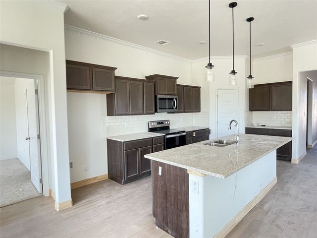 Builder is offering a 2-1 buy down in addition to paying up to 1% of the sales price towards the buyer's closing costs. Additional incentives offered by builder's preferred lender. Builder will also pay for the title policy & survey. Copperas Cove’s newest multi-use development, conveniently located at the southwest edge of Copperas Cove off Highway 190 W, at the foothills of the famed Texas Hill country. It encompasses a vast area of gently rolling terrain culminating at a high mesa with breathtaking views of the surrounding countryside. The outer perimeter lots are designated for duplexes, providing a welcomed buffer between the highway & the Townhouses & single-family zones. The Valley at Great Hills is within Copperas Cove city limits but in Lampasas County. This Tippit home is filled with the perfect blend of character & modern design. The arched portico welcomes visitors & guides them into the well-designed interior. The first impression is the open floor plan & spacious flow of the living room into the dining room, featuring an abundance of natural light. The entertainer's kitchen is complete with an island, a bevy of cabinets & granite topped counters, & walk-in pantry that holds a storehouse of groceries. The owner's suite is situated to the rear of the home for privacy, & boasts an oversized bath with soaking tub for relaxing & a separate shower for "hurry up & get ready" mornings. Gigantic closet links to the utility room, which is outfitted with a mop sink, linen closet, & shelving, & opens to a mud room which connects to the dual car sized garage. The secondary bedrooms are serviced by a full-size bath. Extra perks are: full yard sprinkler system, 16 pallets of Bermuda sod, & privacy fenced backyard. This subdivision is prewired for Fiber Internet.