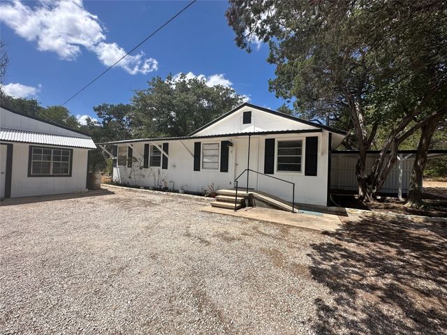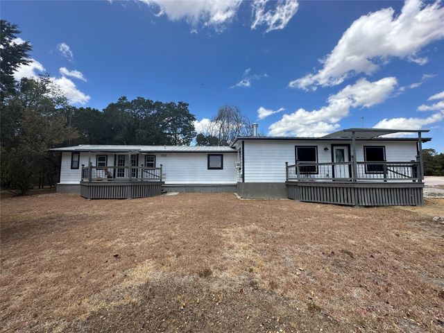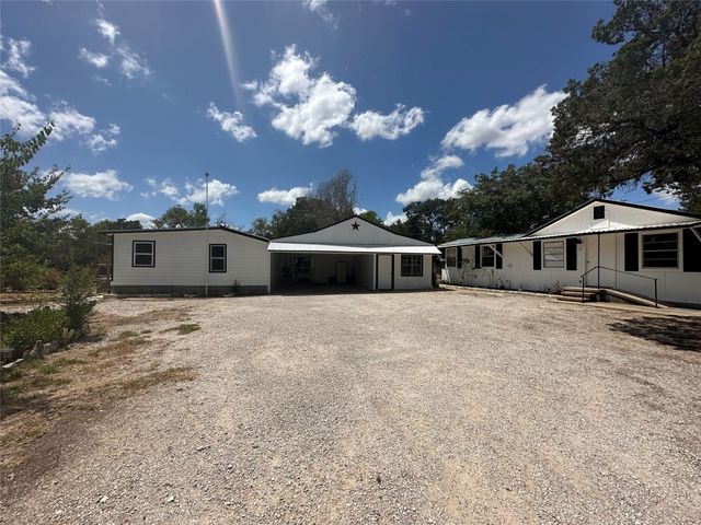 Tastefully expanded and renovated manufactured home with 3 bed 2 bath, along with a 1 bed 1 bath guest house, a separate room for home office/home gym/theatre room, and covered RV parking with full hook up and even a separate meter! Covered porches on both homes, hill country views, and walking trails throughout the 5.56, fully-fenced acres! Multiple shed spaces for tools and a workshop. Have animals? There is a chicken coop and a place for goats!