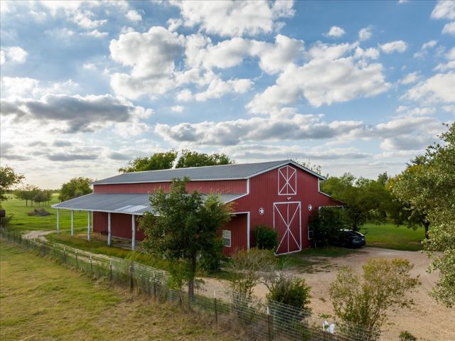 Nestled on approximately 56 acres of picturesque countryside, this private estate is waiting for you!. The centerpiece of this property is a custom farmhouse, offering breathtaking panoramic views. A half-mile tree-lined drive takes you through hay fields, setting the stage for the home that awaits. The journey continues as you find the barn/workshop, a hobby shed & a garage/storage shed, all designed to meet your practical needs. Nature’s beauty graces the property its 2-acre pond, enveloped by 8 acres of green space. Inside, you’ll find that it is equally as inviting as its surroundings. With 3 beds, 2.5 baths & a wraparound porch adorned by a flower garden, it's a residence designed for those who appreciate life’s finest moments. As you enter, you’ll discover an interior that seamlessly marries timeless elegance with modern comfort. The heart of the home is the large kitchen with custom floor-to-ceiling cabinets & large center island. Longleaf pine shiplap walls, ¾” oak flooring, & an array of architectural features, including etched porch doors & stained glass, create an ambiance that is sophisticated and warm. This property is not just about the home, it’s also a hub of agricultural excellence. Roughly 50 acres are dedicated to cultivating Tifton Hay, a valuable crop among local ranchers. The 3,000sq ft barn/workshop offers a towering 26’ ceiling,16’x12’ doors, workbenches, shelving, 100-amp electrical service, chain fall lift, half bath, washer/dryer hook-up, & an extra 3,000sqft of exterior wings for your equipment & vehicle storage needs. The hobby/storage shed, complete with electricity & AC/Heat window units, provides a versatile space for your needs. When it comes to location, this estate has a strategic advantage. Nestled between the charming communities of Elgin & Taylor, you can savor small-town living while still enjoying the convenience of city life. Downtown Austin, only 32 miles away, ensures you’re never too far from the city’s vibrant heartbeat.