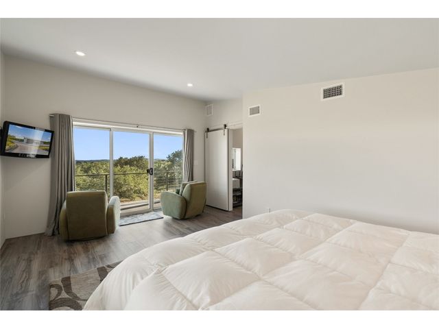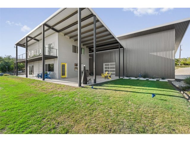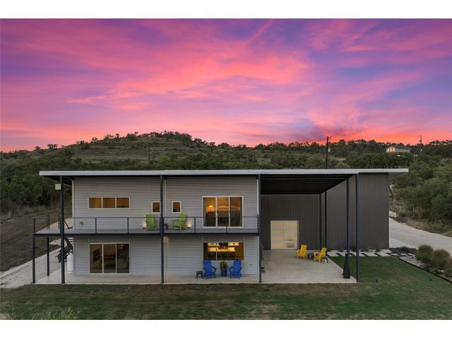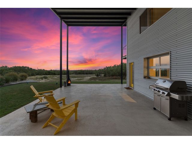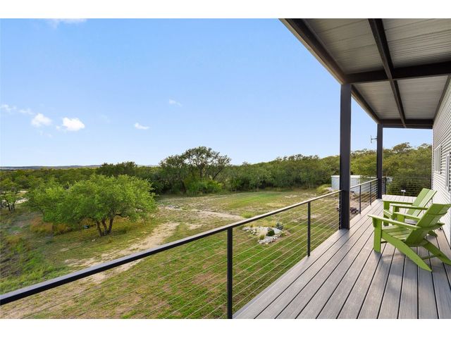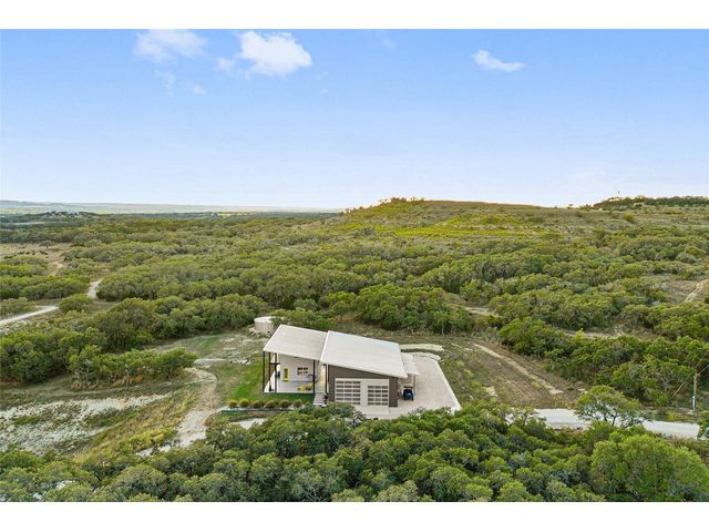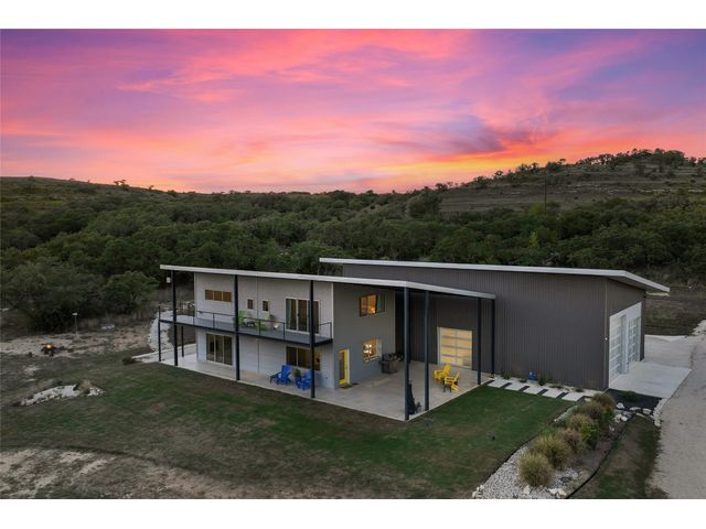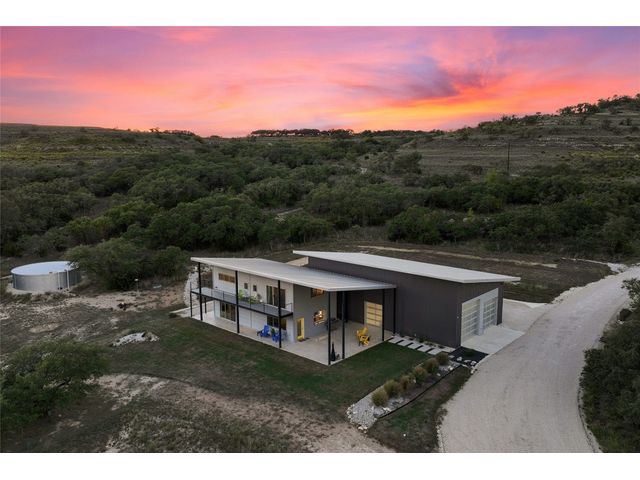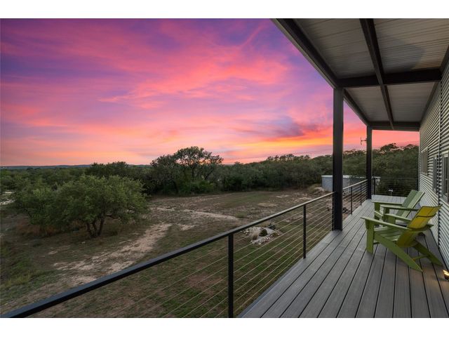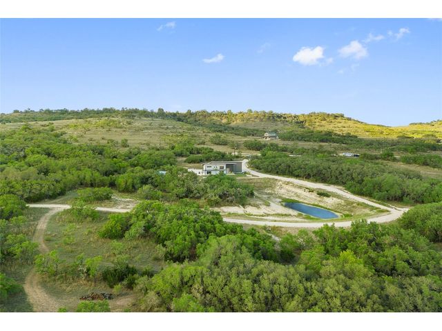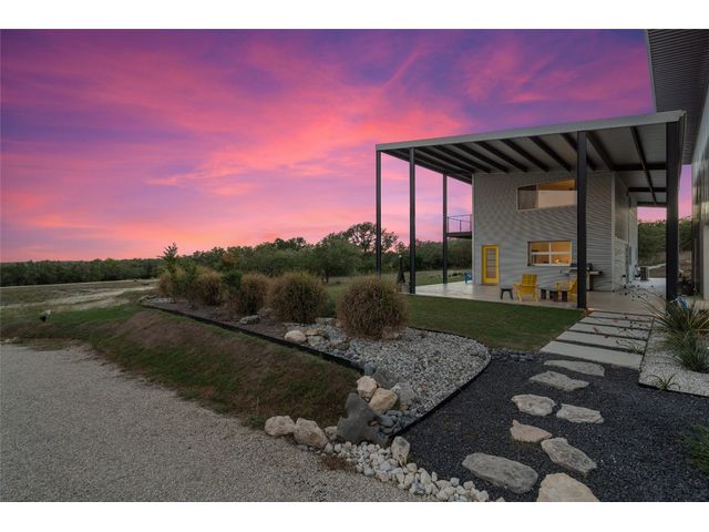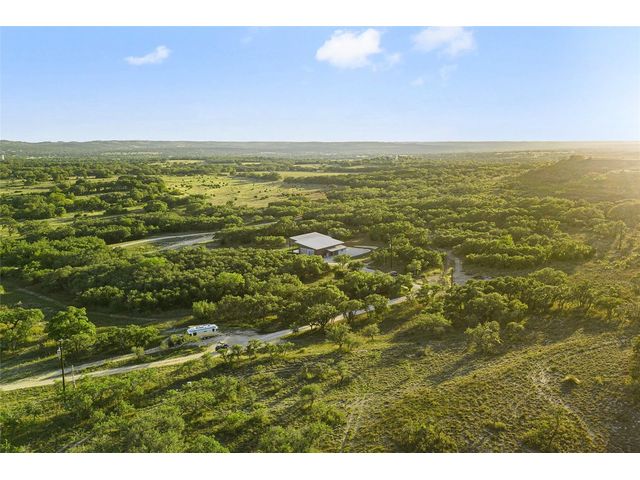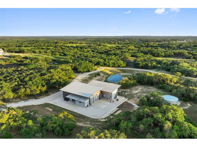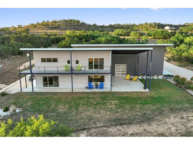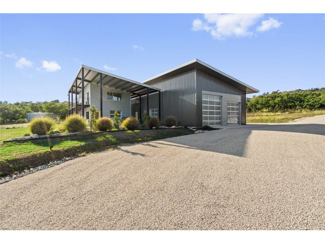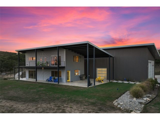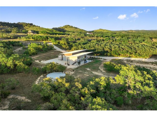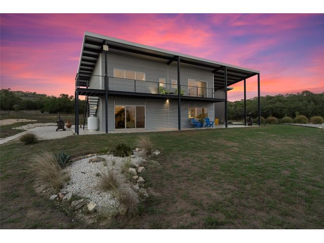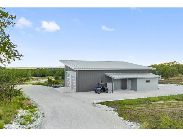 The Ultimate Hill Country Escape! Versatile 31.5+/- acres featuring a sleek 1200+/- contemporary guest house and matching 2400+/ sf multipurpose building offer the perfect blend of Hill Country adventure, agricultural use, privacy and tranquility just 45 mins from Austin or San Antonio. Explore the trails by mountain bike or ATV, practice your swing from the Tifway 419 tee box, grow an orchard or vineyard, keep chickens horses and livestock, or simply enjoy the breezy hill country views overlooking the lined pond. Cinco Blanco is an easily maintained ranchette tucked away in the Hills of Madrone, where you'll find the exquisitely modern and streamlined guest house totally geared toward entertaining. This home brings the outdoors in with luminous windows, inviting covered decks and features artisan finishes such as the floating hickory stair case and Level 5 drywall for that clean and contemporary feel. The perfect complement to the residential footprint is an expansive, temperature-controlled metal framed building that may be transformed to a main dwelling, currently utilized as both garage and workshop, which is also outfitted with (2) 50amp RV hookups located on the interior and exterior of the barn including cleanout, plus 10’ and 12’ towering roll up doors. Optimally efficient, improvements are wrapped in foam insulation and supported by a 30k gallon rainwater harvesting system. Truly an ideal ranchette for an owner who desires to immediately enjoy their property and potentially build a main residence now or in the future. Additional RV hookups have been installed along the scenic ridge for friends and family. The ranchette offers a wide variety of hardwoods: oaks, madrone, red bud and more creating a welcoming habitat for several species of songbirds which benefit the property’s wildlife exemption. Axis and whitetail deer graze freely. Hunting is allowed. Minutes to eateries, shopping, wineries, and distilleries. Exceptionally low carrying costs!