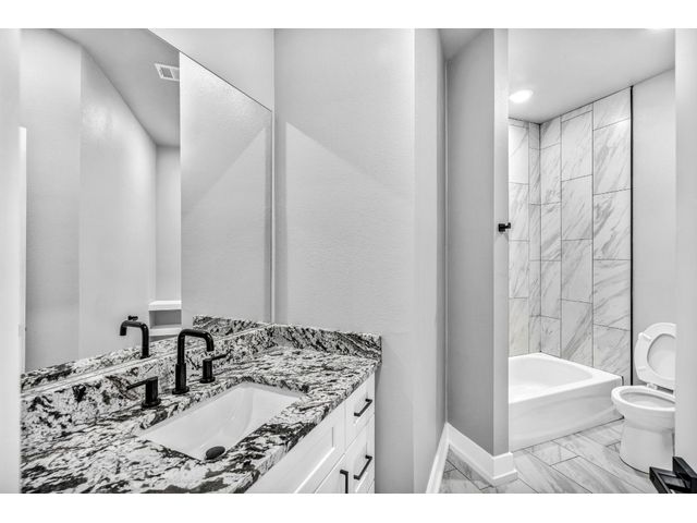 Motivated Seller-Open to Offers. This Brand new home in the heart of Marble Falls that's walking distance to HEB and the Middle school, and conveniently minutes from all Marble Falls has to offer. The home comes in at 2684 square feet, 4 bedrooms, 3 baths, 2 car garage with a game room and office. When you walk in the front door you are greeted by a spacious open floor plan living area with wood burning fireplace, beautiful picture windows and bright natural light. This area seamlessly transitions into your kitchen and dining area with gorgeous granite counter tops, herringbone subway tile back splash, soft-close cabinets and stainless appliances and a large pantry just off of the hallway. The primary bedroom has plenty of room for a king size bed and a sitting area. There are his and her vanities and closets, a large tub and walk in shower. Downstairs you will find 3 more bedrooms and a large laundry room with sink and hanging built ins. The oversized and finished garage has a small work area and large storage closet. Upstairs is the game or flexroom, a small office or storage space and a full bathroom. Finally behind the home you have a sizable and private back yard with new sod and a covered patio. Call to set up a private showing today! Owner is Licensed agent.