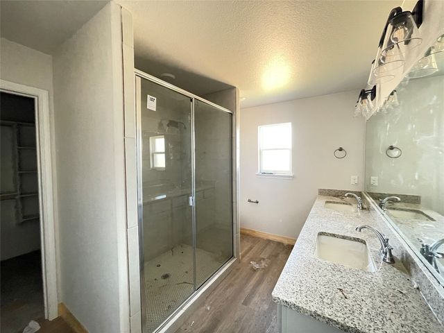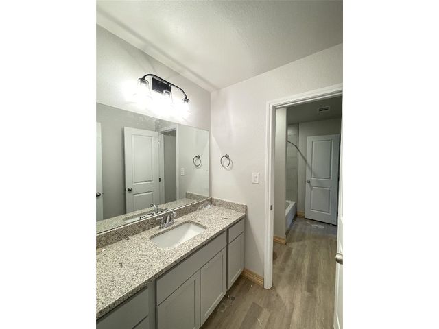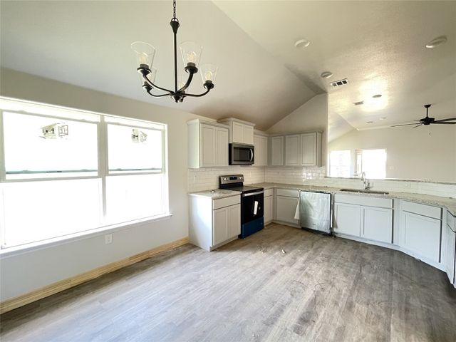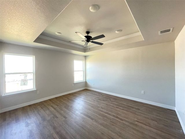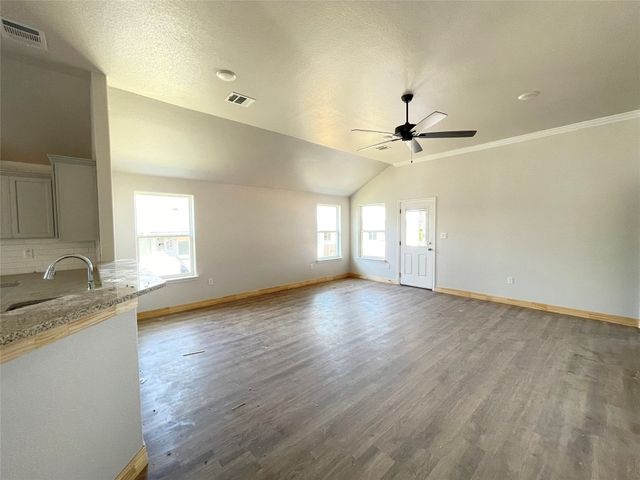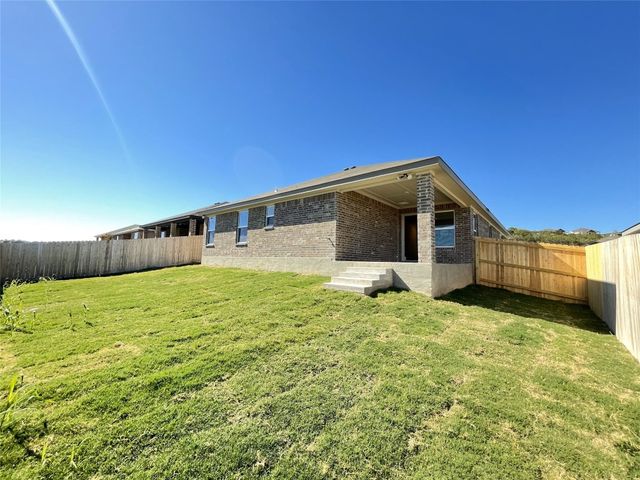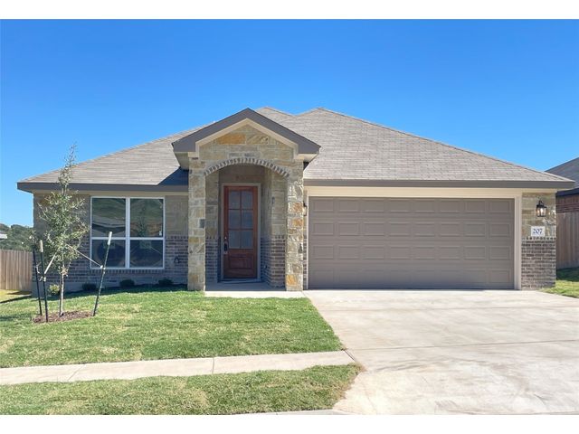 Builder is offering a 2-1 buy down in addition to paying up to 1% of the sales price towards the buyer's closing costs. Additional incentives offered by builder's preferred lender. Builder will also pay for the title policy & survey. Copperas Cove’s newest multi-use development, conveniently located at the southwest edge of Copperas Cove off Highway 190W, at the foothills of the famed Texas Hill country. It encompasses a vast area of gently rolling terrain culminating at a high mesa with breathtaking views of the surrounding countryside. The outer perimeter lots are designated for duplexes, providing a welcomed buffer between the highway and the Townhouses and single-family zones. The mountain top is reserved for custom homes to be built on generously sized lots. The Valley at Great Hills is within Copperas Cove city limits but in Lampasas County. This charming Tippit home presents curb appeal with native stone and brick exterior facade complemented by a portico, an ideal spot to welcome guests. This captivating home offers luxury vinyl plank flooring throughout the main living areas, while the bedrooms have plush carpet. The foyer leads past the flex room on the right to the Texas-sized living room. The eat-in style kitchen is a remarkable culinary space, boasting a bevy of cabinets and granite topped counters, plus breakfast bar for quick family meals. The Owner's suite impresses with coffered ceiling, gigantic walk-in closet, and up-to-date bath with huge step-in shower. A unique Hollywood style bath arrangement services the 3 secondary bedrooms. Interior utility room is positioned conveniently close to the bedroom wing. Dual bay garage and a large, covered patio - perfect for al-fresco dining - round out the features. Extra perks are: full yard sprinkler system, 16 pallets of Bermuda sod, and privacy fenced back yard. This subdivision is prewired for Fiber Internet.