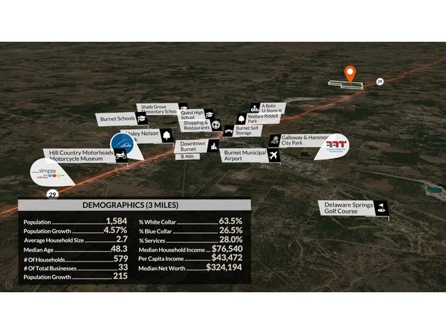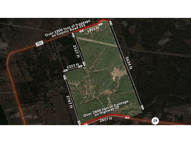 Great investment or development opportunity! This property could be developed with many potential uses including commercial, industrial, high or low-density housing, RV Park, storage facility, or mixed use. It is located about halfway between the cities of Bertram and Burnet on the north side of State Highway 29. The property includes over 2800 feet of frontage on State Highway 29 and over 1900 feet of frontage on paved County Road 252. The property has direct access to Highway 29 via a railroad crossing as well as direct access to County Road 252 on the north side. Located in Eastern Burnet County just 9 miles west of the Williamson County line, 15 miles west of Liberty Hill and roughly 30 miles west of Georgetown and only 49 miles to downtown Austin, TX. The State Highway 29 corridor is poised to continue to grow and develop over the next few decades. There are two houses and a barn built in 1960 as per BCAD. One of the houses is leased to tenants that live there. The other house is leased to a storage tenant. The houses are 1291 sqft and 960 sqft according to BCAD. There are two water wells on the property. One of them is inactive and the other supplies water for the houses. The terrain is gently rolling with two drainages that cross west to east with very minimal flood plain. The soil is shallow, well drained and moderately permeable with 1 – 5% slopes. Native trees, vegetation and wildlife thrives on the property including oak trees, mesquites, cedars, native grasses and native wildlife. There is significant potential recreational value to a buy and hold investor. All owned minerals convey. Location: Halfway between Bertram and Burnet in Eastern Burnet County just 9 miles west of the Williamson County line, 15 miles west of Liberty Hill and roughly 30 miles west of Georgetown and only 49 miles to downtown Austin, TX.