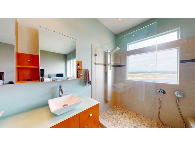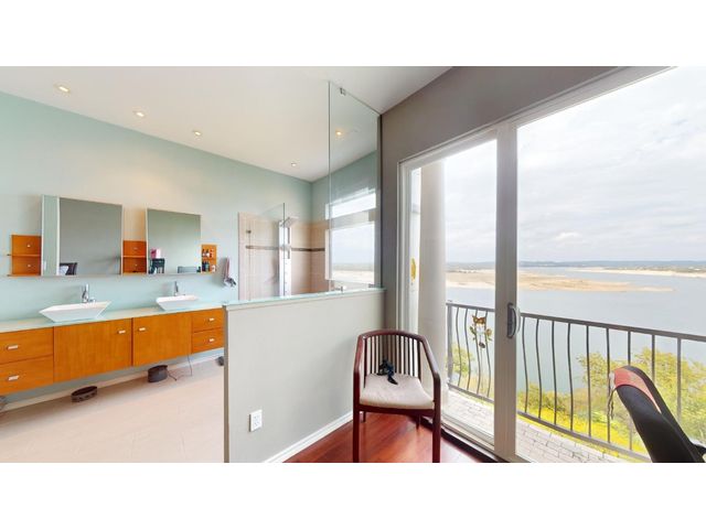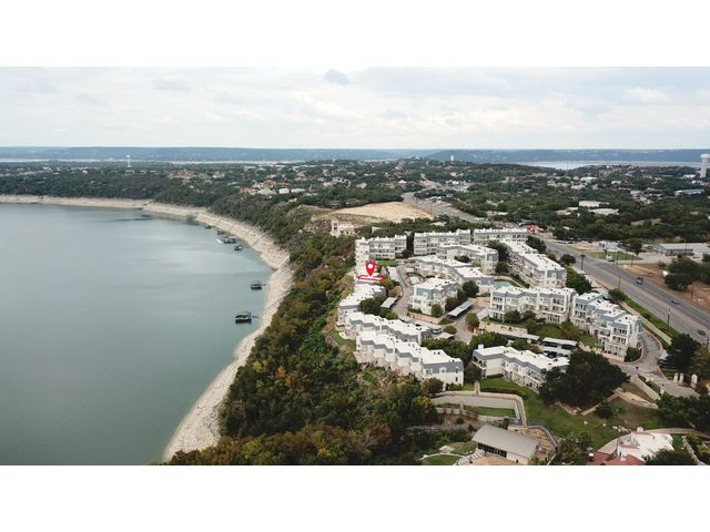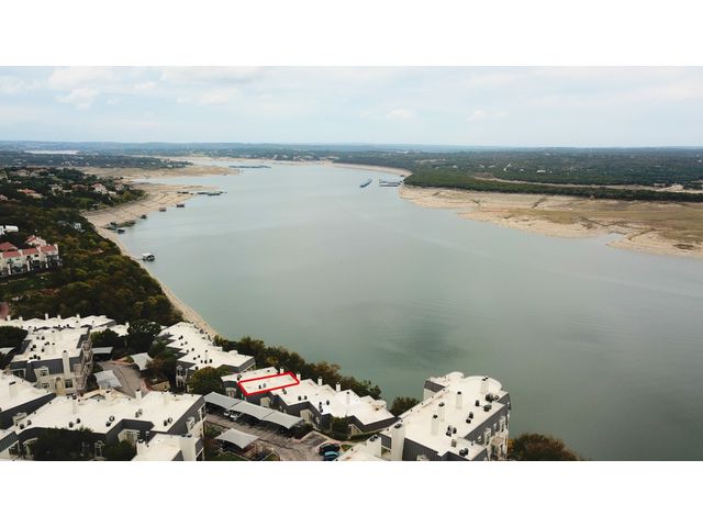 Welcome to your dream retreat at 2918 RR 620, Unit 185, a 1,752 sq ft two-story condo overlooking the serene beauty of Lake Travis. As you enter, a charming small office greets you to the right, perfect for those who work from home, while a staircase on the left leads to the upper level. Continuing forward, another staircase takes you down to an open living room, dining area, and kitchen. The living room frames mesmerizing views of Lake Travis, with views of both sunrise and sunset. Step outside onto the fenced back porch to savor the sights and sounds of the lake, with convenient yard access through a small gate, adding a touch of greenery to your lakeside experience. Venturing upstairs, you'll find a secondary bedroom to the right with a patio overlooking the entrance. However, the true masterpiece is the primary bedroom, boasting large windows that allow you to wake up to the breathtaking views of the lake each morning and bask in the warm glow of the evening sunset. The recently renovated bathroom, with its multi-head shower and shower wand and towel warmer, offers a spa-like escape, complete with its own view of the lake. A small patio adjacent to the primary bedroom provides a perfect lookout. You will also have access to community amenities, including two swimming pools, a fitness room, a basketball court for some friendly competition, and boat dock access, letting you explore Lake Travis at your leisure. Rest easy with gated security for peace of mind. What's more, the condo association fees cover water, sewer, internet, and cable, leaving you with only electricity and any additional cable channels to consider. This exceptional property offers a luxurious lakeside lifestyle with all the modern conveniences you could desire. Make this condo your tranquil lakeside haven, where every day feels like a vacation with the beauty of both sunrise and sunset graces your everyday life. Dual convection ovens and smart ultra-quiet dishwasher.