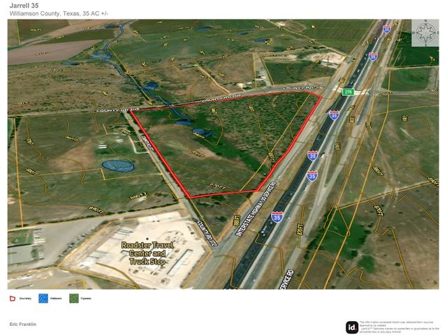 35+ Acres with approx. 1,550 ft. of frontage along Southbound IH-35 Frontage Rd. at a County Road Crossover. I-35 Frontage plus CR frontage on two other sides of this triangular Corner tract. Fantastic development opportunity in a rapidly growing community. Only a short drive to Salado as well. This property will eventually lie at the crossroads of the proposed J1 Corridor that will connect Hwy 183 with I-35 to relieve traffic further to the South. See agent for details. Jarrell ETJ, with a sliver in City Limits along I-35. Incredible opportunity for a multitude of uses!