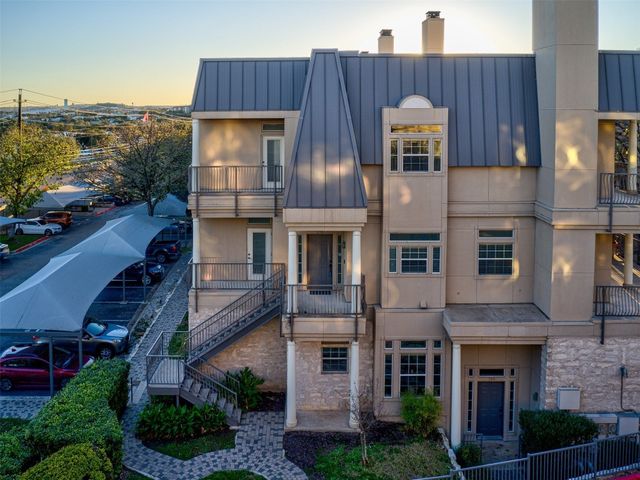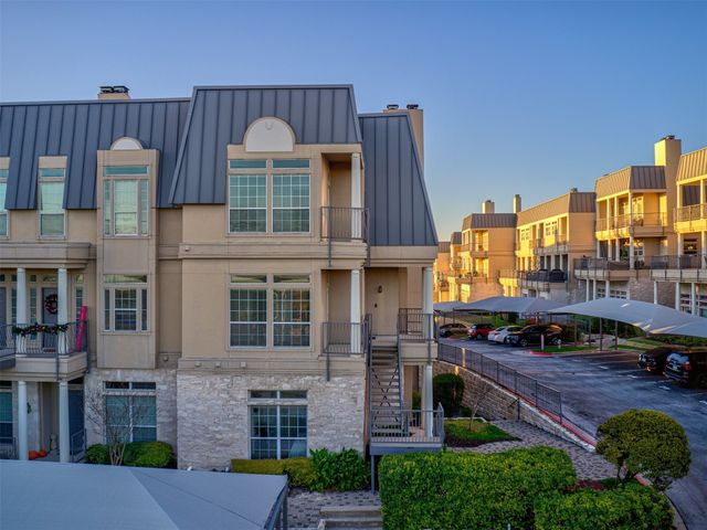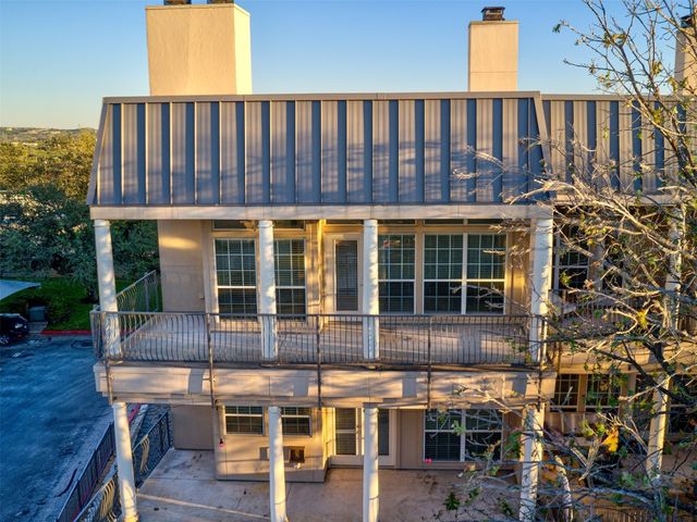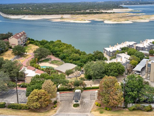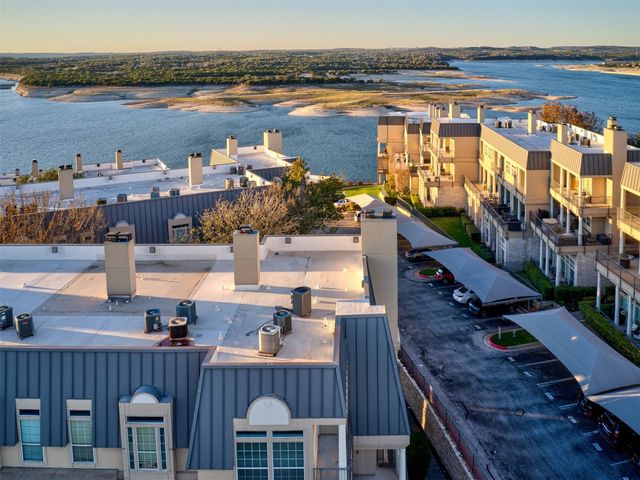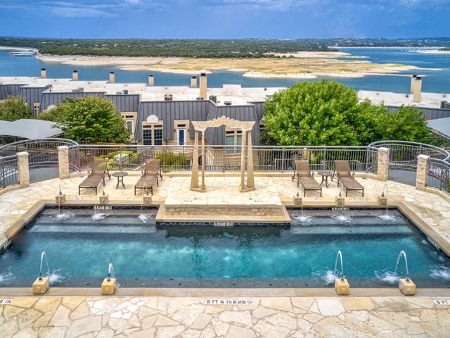 Live like you are always on vacation in this elegantly updated condo with Lake Travis views! Zoned into highly sought after and award-winning Lake Travis ISD with proximity to dining, grocery stores, and the Hill Country Galleria. Whether you are looking for a second home or a primary residence, this unit boasts a sought-after floorplan complete with 3 bedrooms, 3 bathrooms, 4 balconies, a wet bar for entertaining guests, an open concept eat in kitchen, and a large living space with a cozy fireplace. The upstairs oversized master is a welcoming retreat with its own sitting area and fireplace, as well as a private balcony with lake views. The master bath features a garden tub, double vanities, a separate shower, and a large walk-in closet. This wonderful unit was recently repainted, wood flooring added, upgraded LED lighting, and built-in surround sound. The refrigerator, washer, and dryer convey. There is a designated covered parking space adjacent to the unit, and nearby shared guest parking spots. The Villas on Travis complex offers top notch amenities that support an active and fun lake lifestyle. Complex amenities include two pools, hot tubs, a tram that goes down to a day dock, walking trails, sun deck overlooking Lake Travis, private fitness center, basketball courts, and tennis courts. HOA dues cover water, sewer, trash, internet, amenities and grounds keeping. The West Side of Lake Travis is a premiere location allowing for a faster commute into downtown Austin with the benefit of all the fun the lake has to offer. This unit is one you will not want to miss!