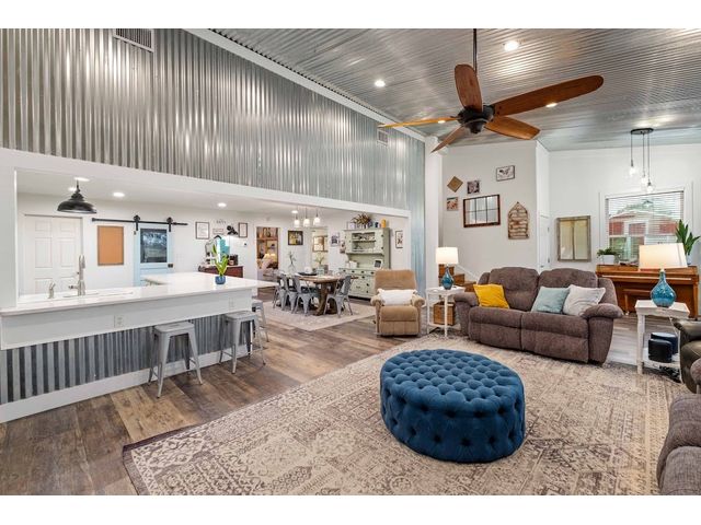 Rural tranquility combines with modern living in this beautifully designed home on 10 acres. Step into the open floor plan - rustic chic with a modern vibe. The kitchen's large island has room for seating and overlooks the lofty family room. The spacious primary retreat is large enough to include the owners' office or exercise area. The suite is complete with a generous bath with walk-in shower, soaking tub, and large walk-in closet. Also on the first floor is a guest bedroom with full bath. A spacious mudroom with farm sink, cabinets and half bath are handy for keeping shoes and backpacks contained. Upstairs, three additional bedrooms and two baths provide ample space for family or guests. A sizeable upstairs common area serves as a versatile space for play or study, catering to your lifestyle needs. The property also features a 2000 square foot metal barn complete with a full bath, and an attached 1320 square foot equipment shed, making it perfect for various hobbies and large toys that country living affords. Just a mile away, is the community of Winchester. The little whistle-stop town offers a variety of amenities including a steakhouse, an ice cream and sundries shop, a popular pool hall, and a community center that hosts a farmers market every first Saturday of the month. This property combines space, function, and location, making it an excellent choice for anyone seeking a balance between country living and modern conveniences.