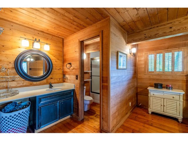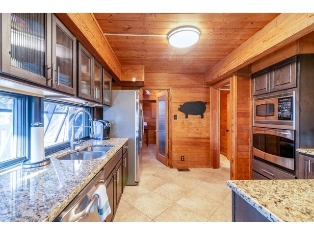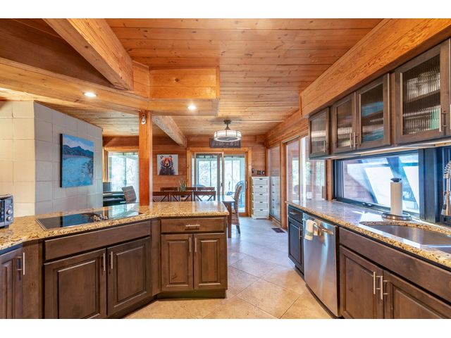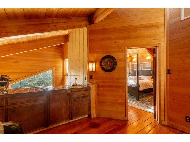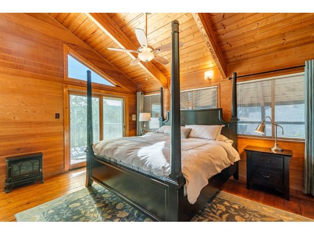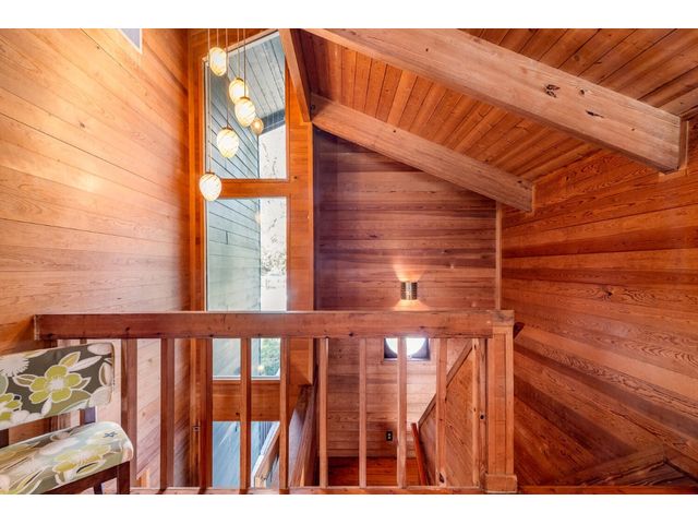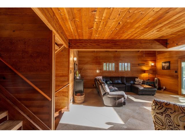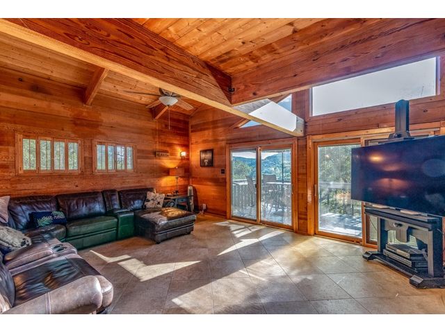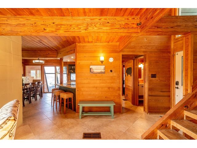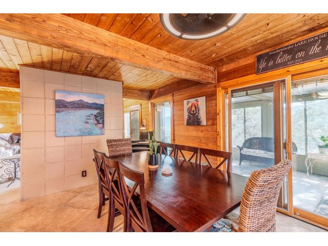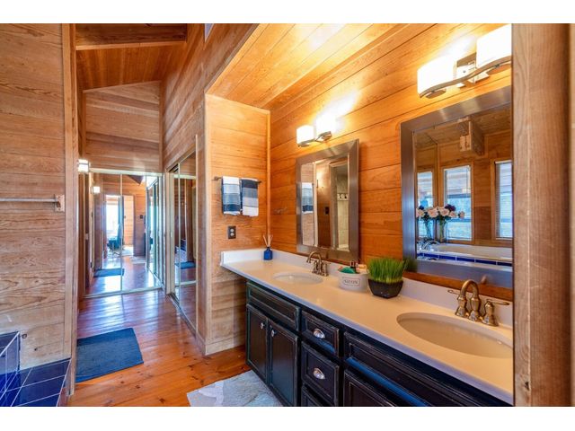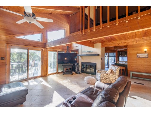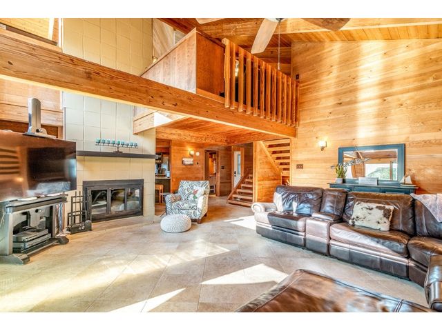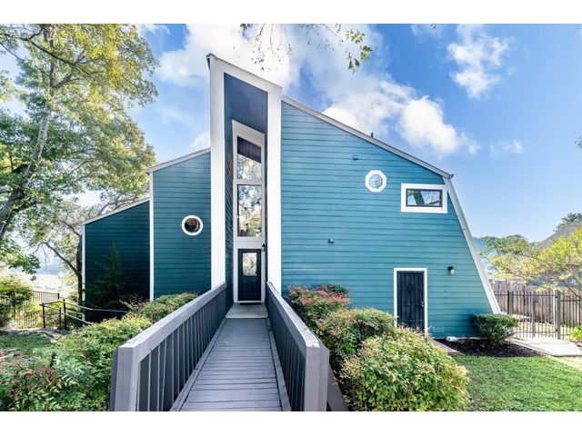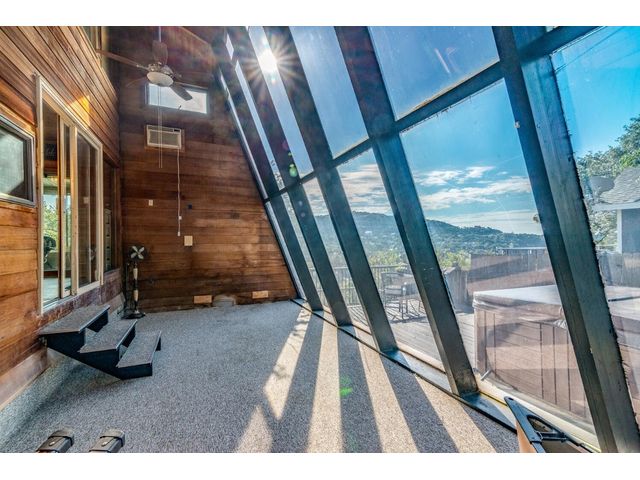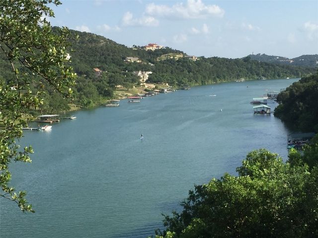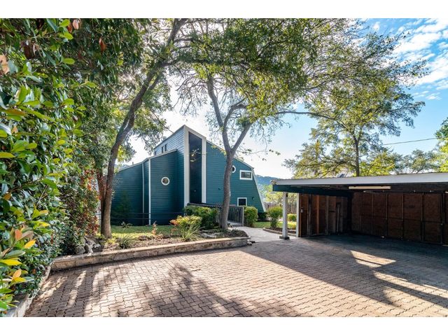 Nestled in the picturesque Lake Sandy neighborhood, this furnished lakefront home offers breathtaking sunrises and tranquil sunsets. The uniquely designed house boasts an interior framed with exquisite woodwork and high vaulted ceilings, creating an inviting ambiance. Step into an open floor-plan updated kitchen featuring granite countertops, recessed lighting, SS Appliances, glass-faced cabinets, and a spacious pantry. The family room presents views, a floor-to-ceiling fireplace, soaring vaulted ceilings, and elegant tile flooring, enhancing the sense of space and comfort. The upper level hosts the primary bedroom scenic views, a cozy fireplace, beamed ceilings, and a private balcony to soak in the natural beauty. The primary spa with granite counters, a double vanity, a garden tub, a separate walk-in shower, and ample closet space. A second living or office space on the upper level provides flexibility and convenience. The secondary primary suite features a well-appointed full bath, a walk-in closet, and a private porch with a swing, creating a serene and private retreat. The main floor hosts a convenient laundry room while a sunroom on the side of the house serves as great storage for kayaks, canoes, bikes, or other recreational gear. Enjoy the added amenities with a sauna complementing the hot tub that conveys with the property. Ample on-site parking, including space for boats, RVs (equipped with a 50-amp plug), and other recreational vehicles. The property features a detached carport, a separate double-gated entrance, a fenced backyard, and direct lake access via a staircase, complete with a boat dock for when the water level meets the dock. Decks and a sunroom at the rear of the property serve as a gateway to your very own private retreat. Located conveniently close to schools, parks, shopping, dining options, and only 30 miles from downtown ATX, this home offers a perfect blend of serenity and accessibility for a quintessential lakeside lifestyle.