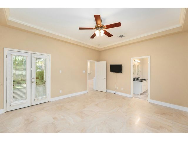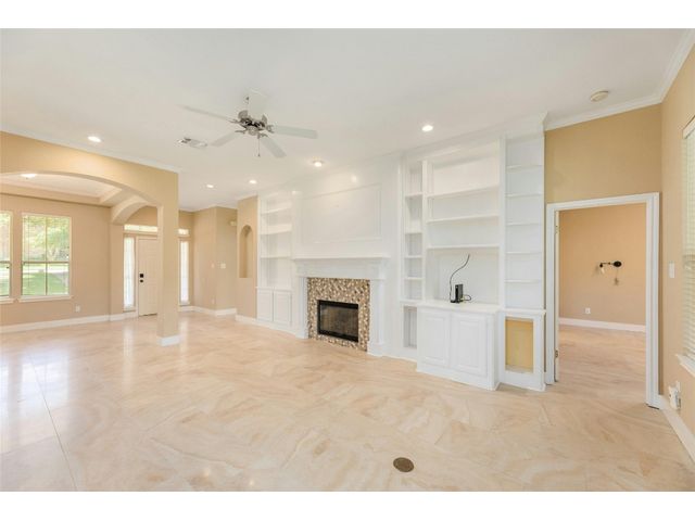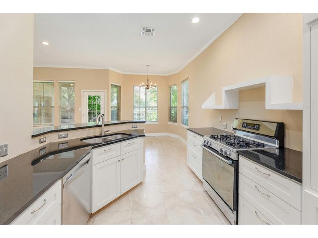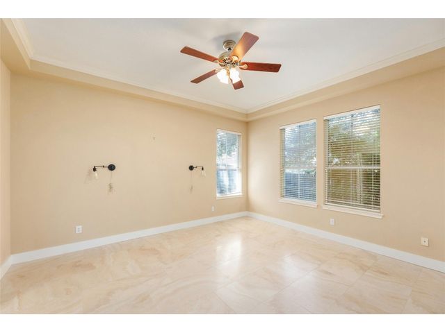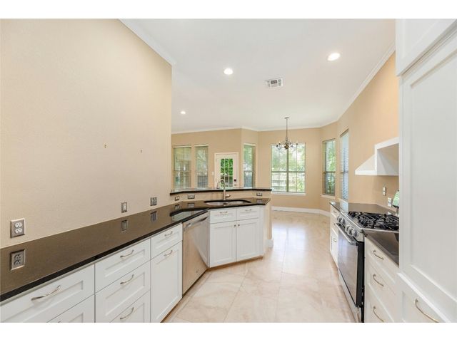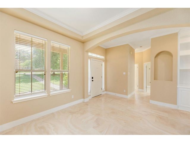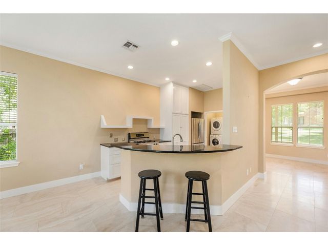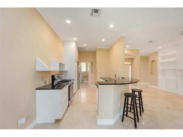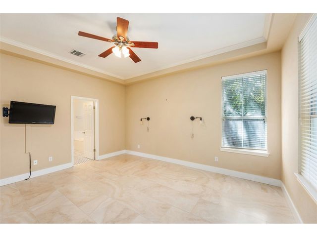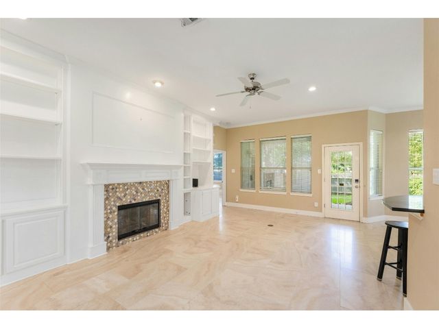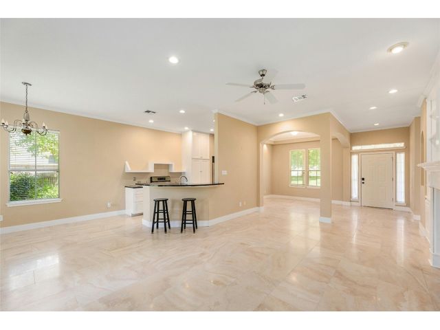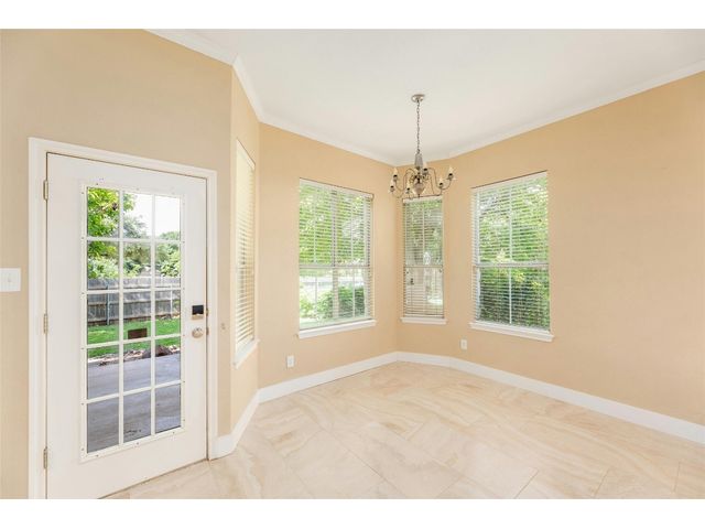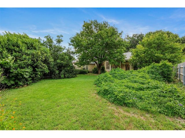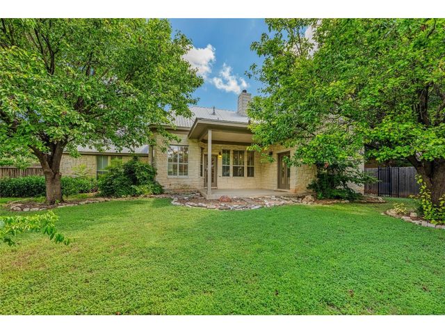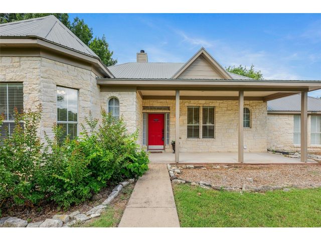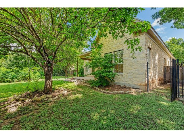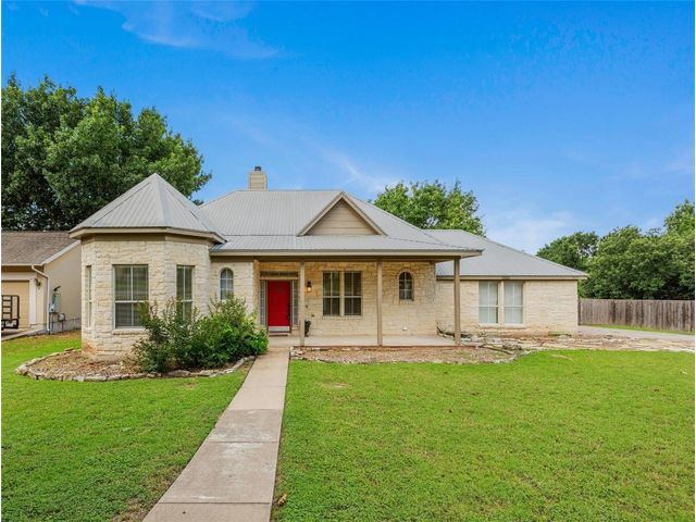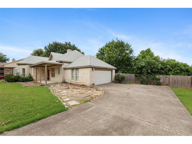 Welcome to Old Town Pflugerville! Built in 1999, this single story home sits on a .28 acre city lot on a quiet street only blocks from downtown Pflugerville and has easy access to major roadways. This ranch style home has custom details throughout that add to the charm of this property. A metal roof, crown molding, custom built-ins, large front porch, covered patio and 4 sides limestone create a cozy feel. The home boasts an open floor plan with recent updates including: tile flooring throughout, interior paint and a kitchen remodel. Primary Suite overlooks backyard and has access to patio. The en-suite bath has a jetted tub, separate shower, dual vanity and large walk-in closet. Two additional bedrooms share the updated hall bath. Flexible space off of the entry could be second dining or open office that overlooks covered front porch. Enjoy the private backyard from the covered patio. Fenced dog run on side of home. The extended driveway leads to the side entry garage with opener. No HOA and city of Pflugervlle tax rate.
