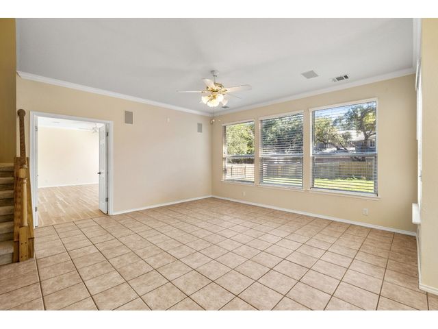 Beautiful Home in great neighborhood walk to school This can be a 4 bedroom the media room has a closet also has 6 in wall speakers in living room and kitchen. New refrigerator , 370 sq ft concrete patio slab in back yard. This home is a must see . Well established neighborhood. Large mature trees, New Roof , new AC installed soon