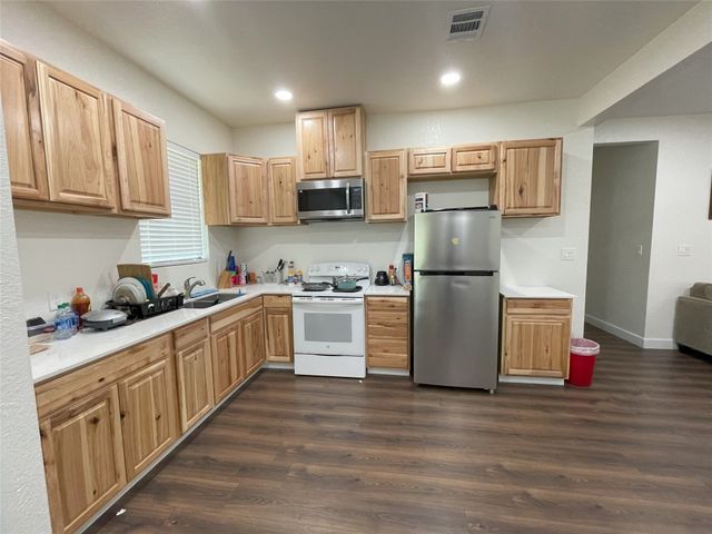 Remodeled 3 bed, 2 bathroom, 0.6 acre home in the heart of Schulenburg! The inside of this home has an open layout with natural light from the numerous windows. This property has a spacious backyard complete with 2 storage sheds, a functional chicken coop, and a versatile building that can be transformed into a studio, guesthouse, or whatever suits your lifestyle. The yard is cleared and fully fenced with gates for easy access both at the front and back. Shading is provided with the few trees surrounding the property including a pecan tree! Covered BBQ area with built in counters and seating - perfect for entertaining. There's also plenty of parking with a convenient carport and additional guest parking available. (Motivated Seller!)