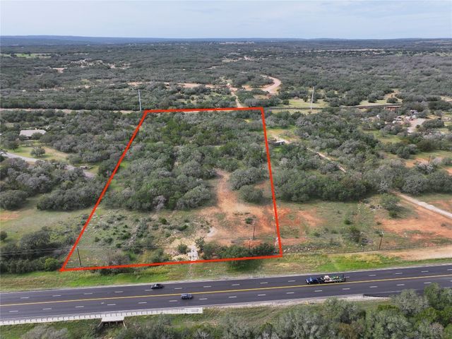 10-acre residential lot with HWY 281 Frontage just north of Downtown Johnson City. Heavily wooded and very private lot. This property is very flat with several build pads.
