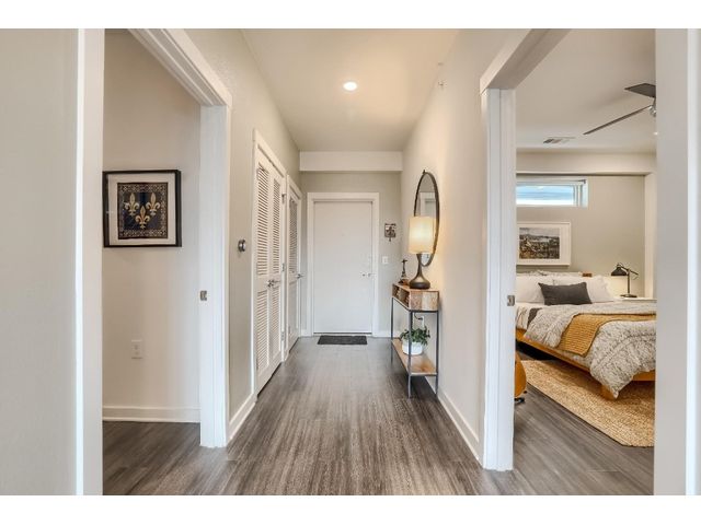 SELLER FINANCING AVAILABLE with much lower than market interest rates. Get a rate in the mid 5’s to mid 7’s depending on down payment, MINIMUM of 10% down. NO formal underwriting, lower closing costs, no discount points. Stunning top floor, corner unit loft with walls of windows and views of downtown. An extra large patio (347 sf) and wide-planked floors expanding throughout the open floor plan provide a warm and inviting space for everyday living and entertaining. This is a rare large 2 bedroom loft with a separate enclosed office space. The unit also comes with a spacious storage unit conveniently located adjacent to the unit’s designated parking spaces, boasting generous dimensions of 19’5” x 8’8“. Located in a modern condo community that offers a ton of great amenities including a gym, yoga/dance studio, rooftop pool (repairs pending), club house/community space (great for business meetings and personal gatherings), dog park, and 2 garage spaces. The beautiful courtyard offers grills, an outdoor fireplace and legendary heritage oak trees that provide the best shade for hot summers. Right next to the up-and-coming St. Elmo Market, walking distance from The Yard (home to Austin Winery, St. Elmo Brewery, Spokesman Coffee, Austin Cocktails, Texas Sake Co., Still Austin Whiskey Co., MADabolic Gym/Fitness, Wooly’s Beach Volleyball and more!), and just minutes away from the downtown action, the SoCo charm, and the serenity of Lady Bird Lake. There’s a real buzz to this place – come see what it's all about!