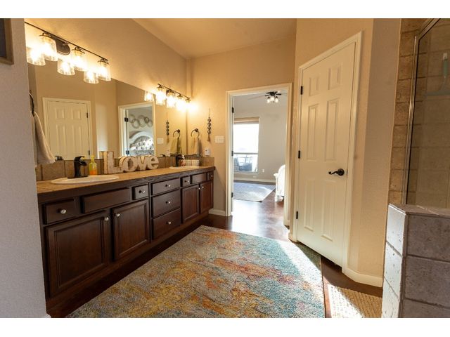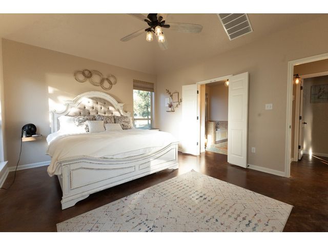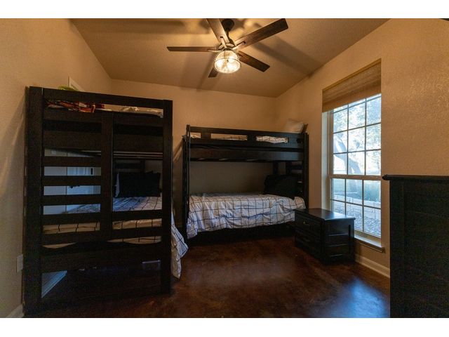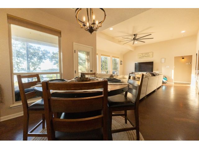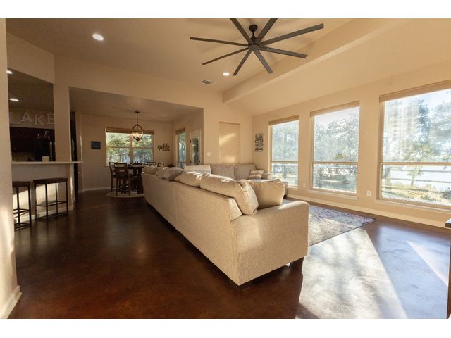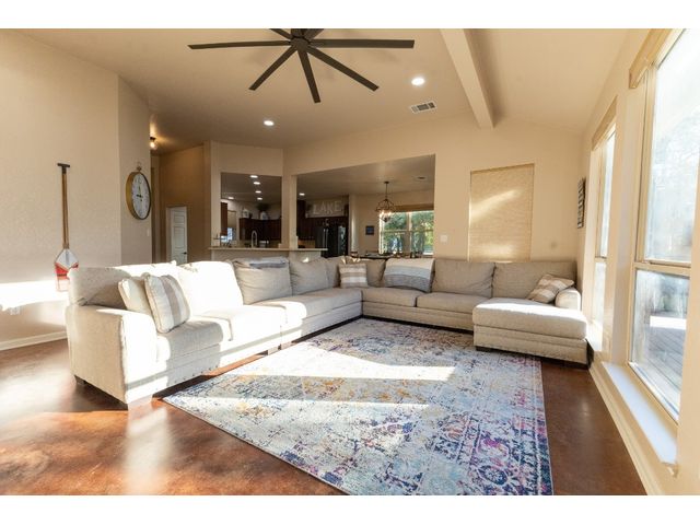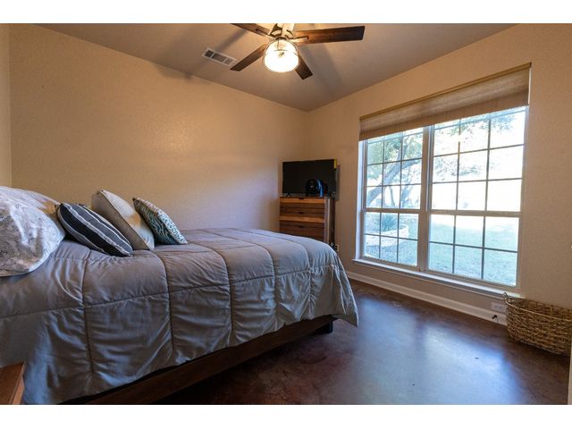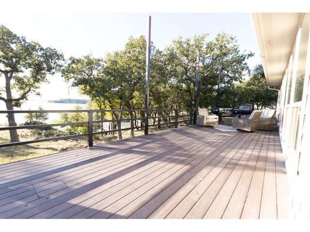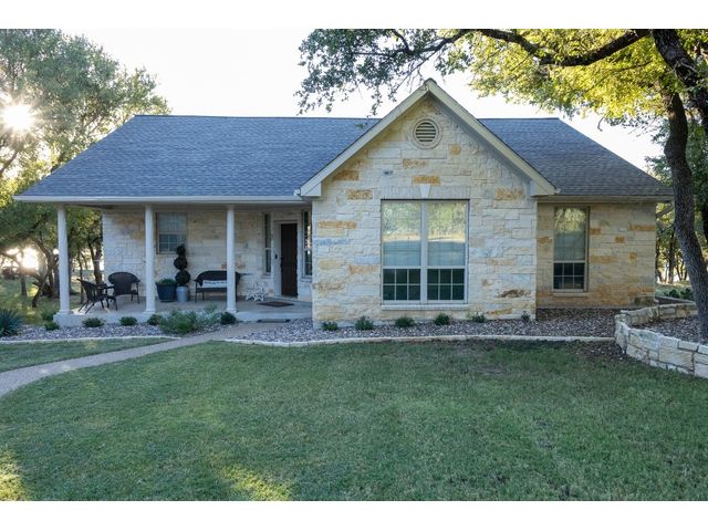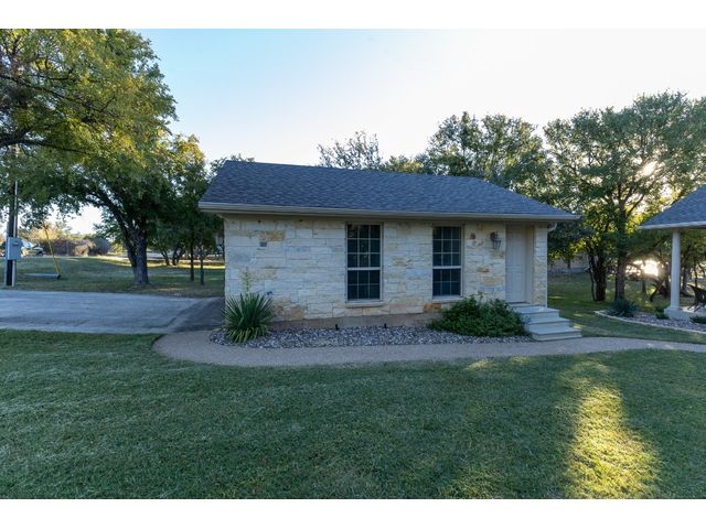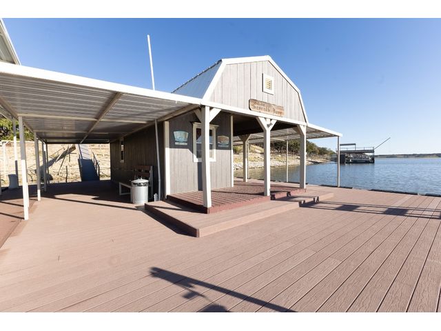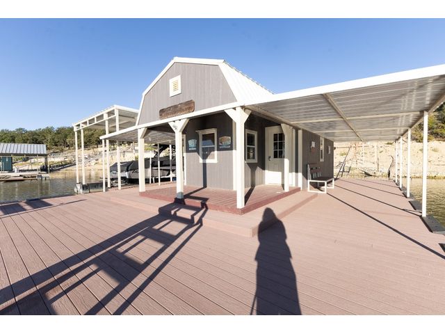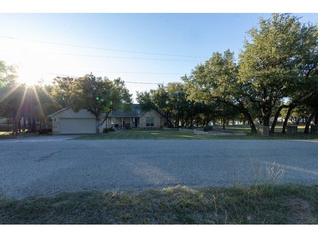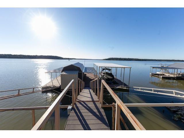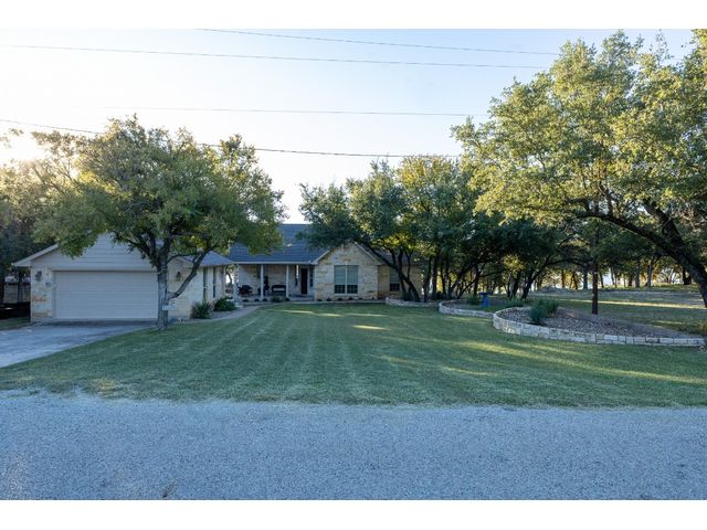3/2 Home on Lake Brownwood with Dock in Brown County Beautiful Austin Stone 3/2 home on deep water on Lake Brownwood. The home has1981 sq ft in the main home and a 500 sq ft cabin on the dock. The main home offers: vaulted ceiling, open concept, large kitchen, custom cabinets, pantry, gas cook top, refrigerator, microwave, wine cooler, eat in bar, island, granite counter tops are being installed in kitchen, living room, and large custom windows with beautiful lake views. A large primary bedroom with ensuite bath featuring granite counter tops, jacuzzi tub, separate shower, water closet and walk in closet, and dual vanities. The bedrooms are a split arrangement and the 2nd bath has granite with tub shower combo. The floors are stained concrete for ease of maintenance and cleaning. There is excellent landscaping, fire pit, and a large deck overlooking the lake to relax and enjoy the outdoors and views of the lake. A two car garage for vehicles or lawn equipment is detached from house but built to match the home. To complete the lake living it is an easy walk or drive to the dock that features a new hydro hoist lift for up to 9000 lbs, swimming deck, covered porches, and a cabin completely finished out with TV, kitchenette, bathroom, living and sleeping area. The current water depth is about 13 feet deep….included in sale: furnishings, lawn mower and new golf cart.