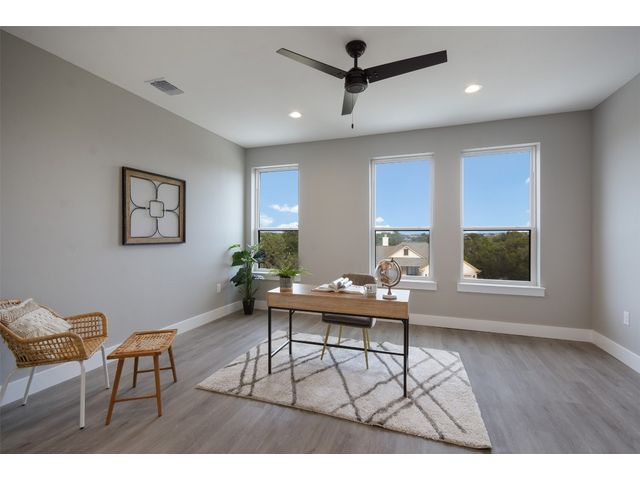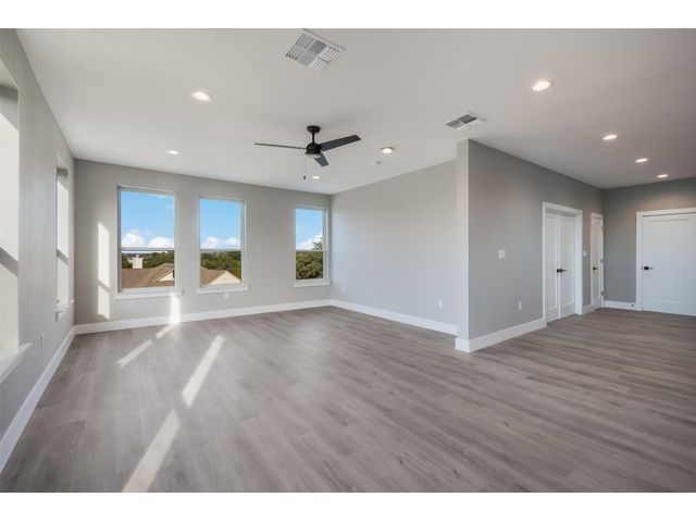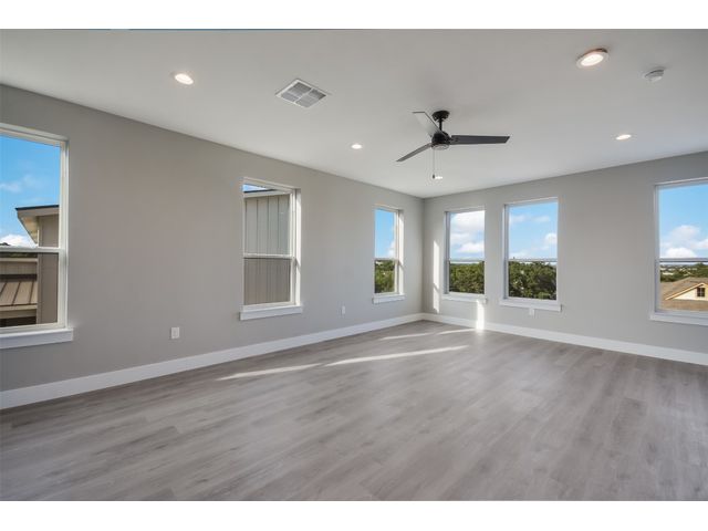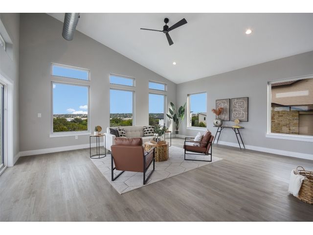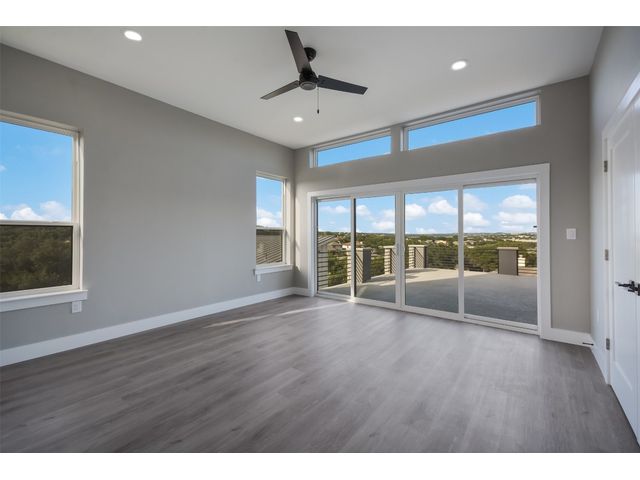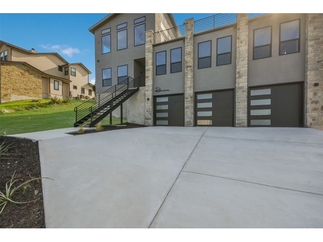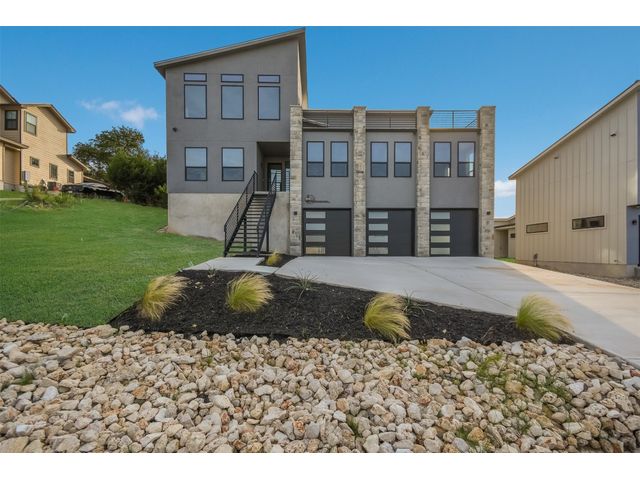 One of the Only communities on Lake Travis with a usable boat ramp and lake access.Resort living with room for everyone. Closing cost incentives. Fabulous STR potential. This home offers so much privacy with 3 large bedrooms, office, and gameroom on the bottom floor. The primary suite is on the top floor to take in all the fabulous views. Expansive roof top patio. Panaromic hill country, lake and golf course views, what more could you ask for? Gourmet kitchen with Bertazzoni oven, pot filler, built in profile appliances, wine rack, Quartz counters, and tons of counter space and storage to work with. Open concept kitchen, living, dining with natural light everywhere to take in the views. Walk to beautiful lake travis, marina, gym, pool, clubhouse, golf course, bar, restaurant and bingo. All right at your finger tips. One of the best neighborhood 50 acre park offering a boat ramp and beach. The sunsets are to die for. Just 30 mins to all major retailers and restaurants. Room for a pool or playscape in the backyard.