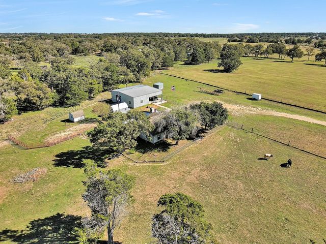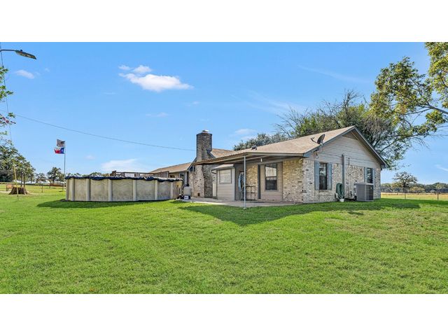MOVE IN READY HOME ON 6 ACRES, CLOSE TO MAIN HIGHWAY AND SHORT DISTANCE TO TOWN! Welcome home to a beautiful 2,060 sqft home located on a cross fenced 6+/- acres with a gorgeous pond, large front pasture and no known restrictions. A 30’ X 50’ shop with water, electric and an oversized 14’ X 50’ awning sits at the back of the property. Immediately entering the 3-bedroom, 2 bathroom home you will notice the cathedral ceiling, floating shelves, built in bookshelves next to the brick fireplace and small window accents to allow extra natural light into the main living area. This home has many recent improvements as well as 4 large producing Pecan trees and a large newer above ground swimming pool. Only 10 miles from Giddings, 30 +/- miles from Elgin, 50 +/- miles from Austin Bergstrom Airport. Could this be the perfect place for you to call your new home?